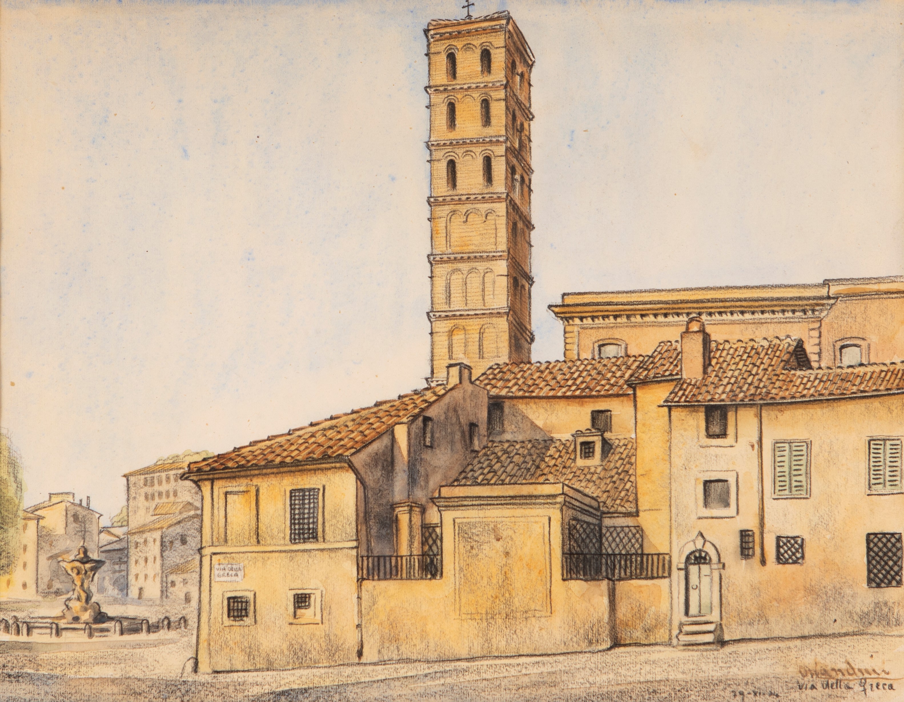 Firma, data e titolo in basso a destra: "Orlandini 20 - XI - 34 via della Greca"