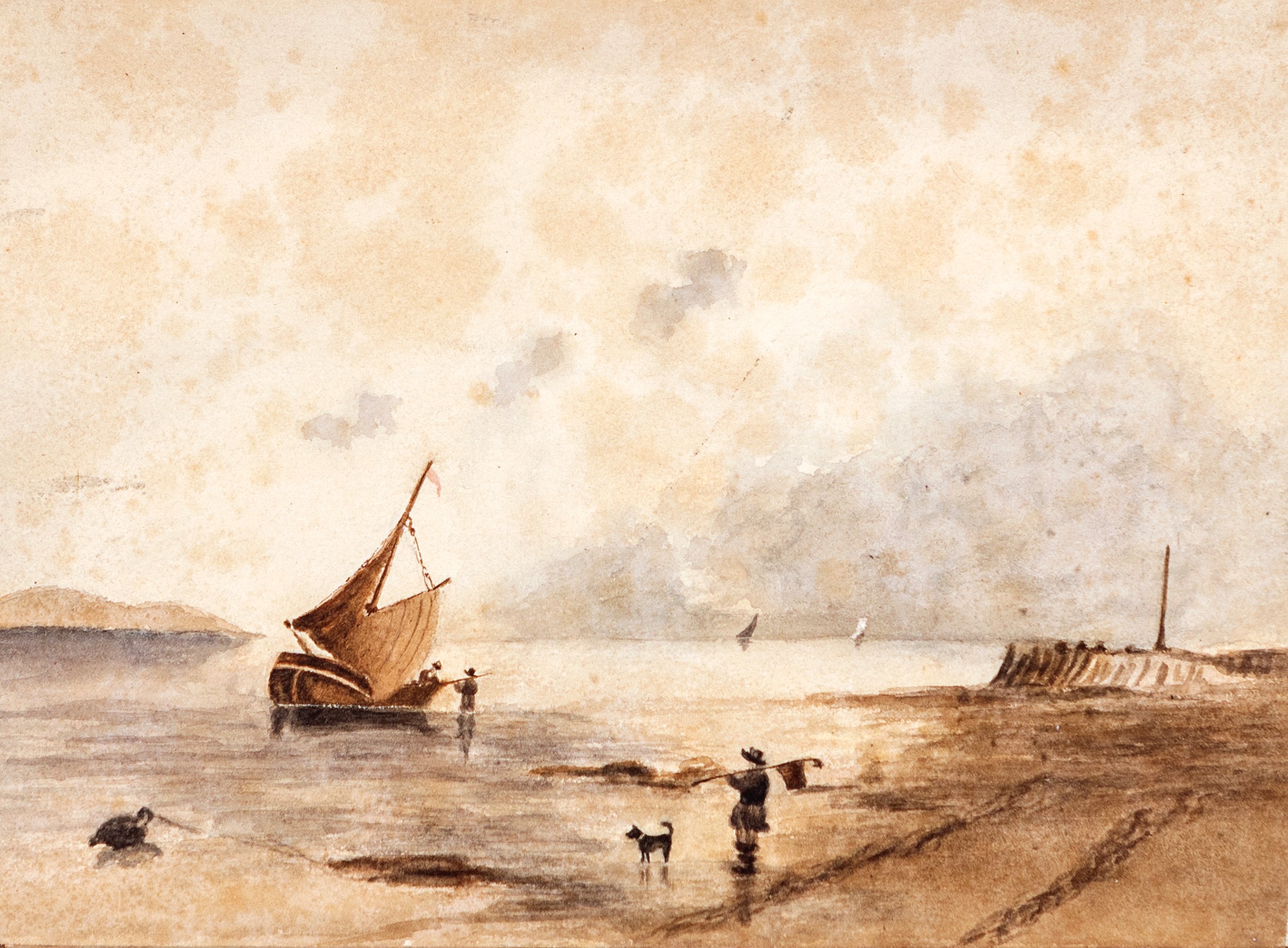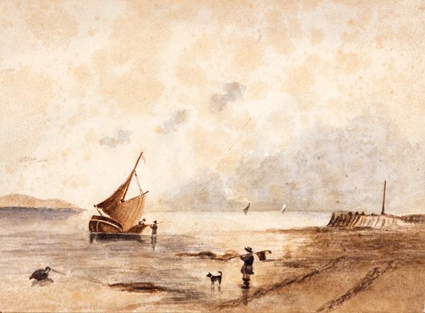 Marina con personaggi, fine XIX secolo