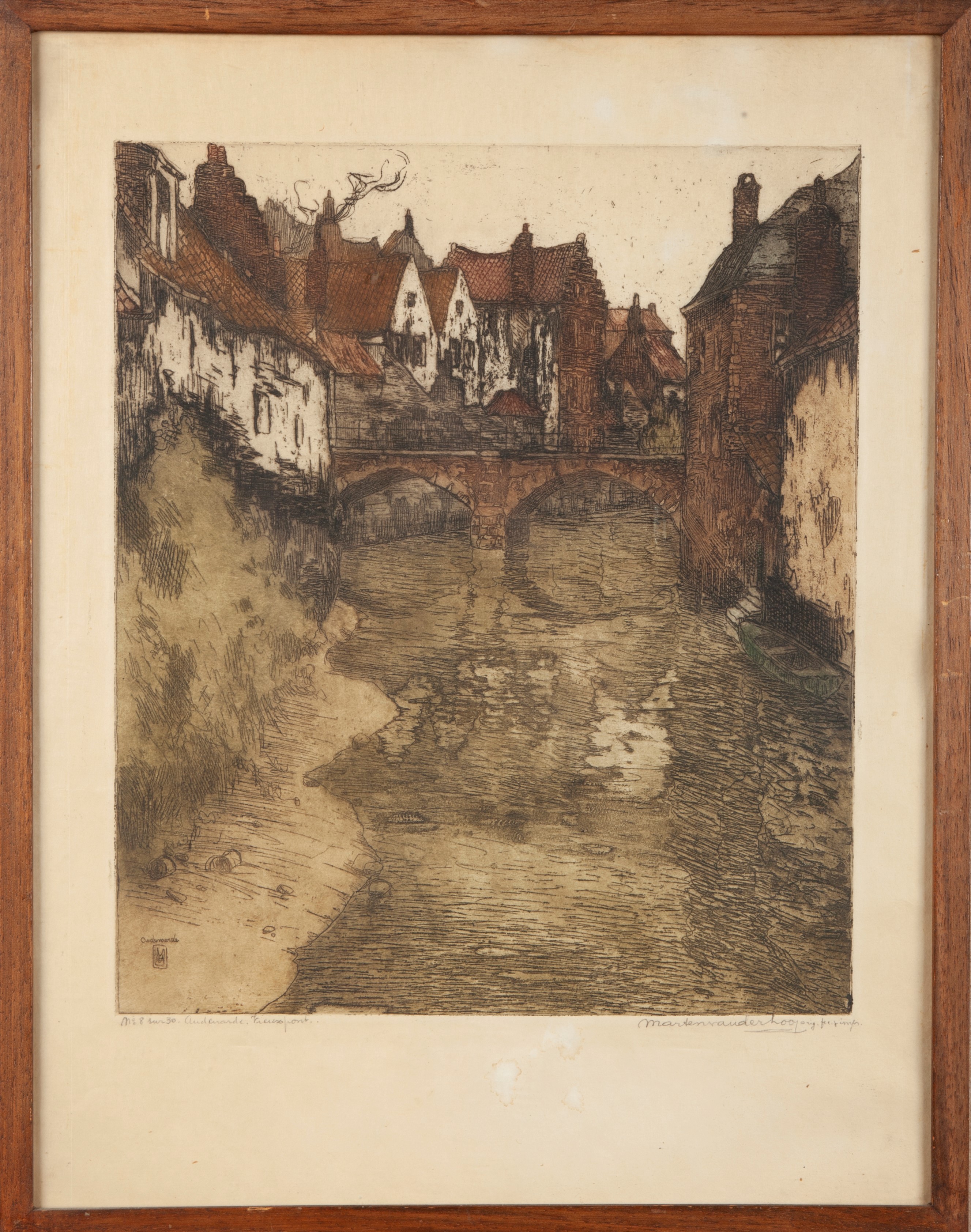 Numerazione "n°8 sur 30" e iscrizione "Andenarde. Vieux pont" sulla lastra in basso a sinistra. Firma a matita in basso a destra. Provenienza: eredi Ettore Modigliani, Milano.