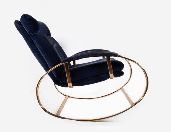 Struttura in ottone con cuscini imbottiti foderati in tessuto