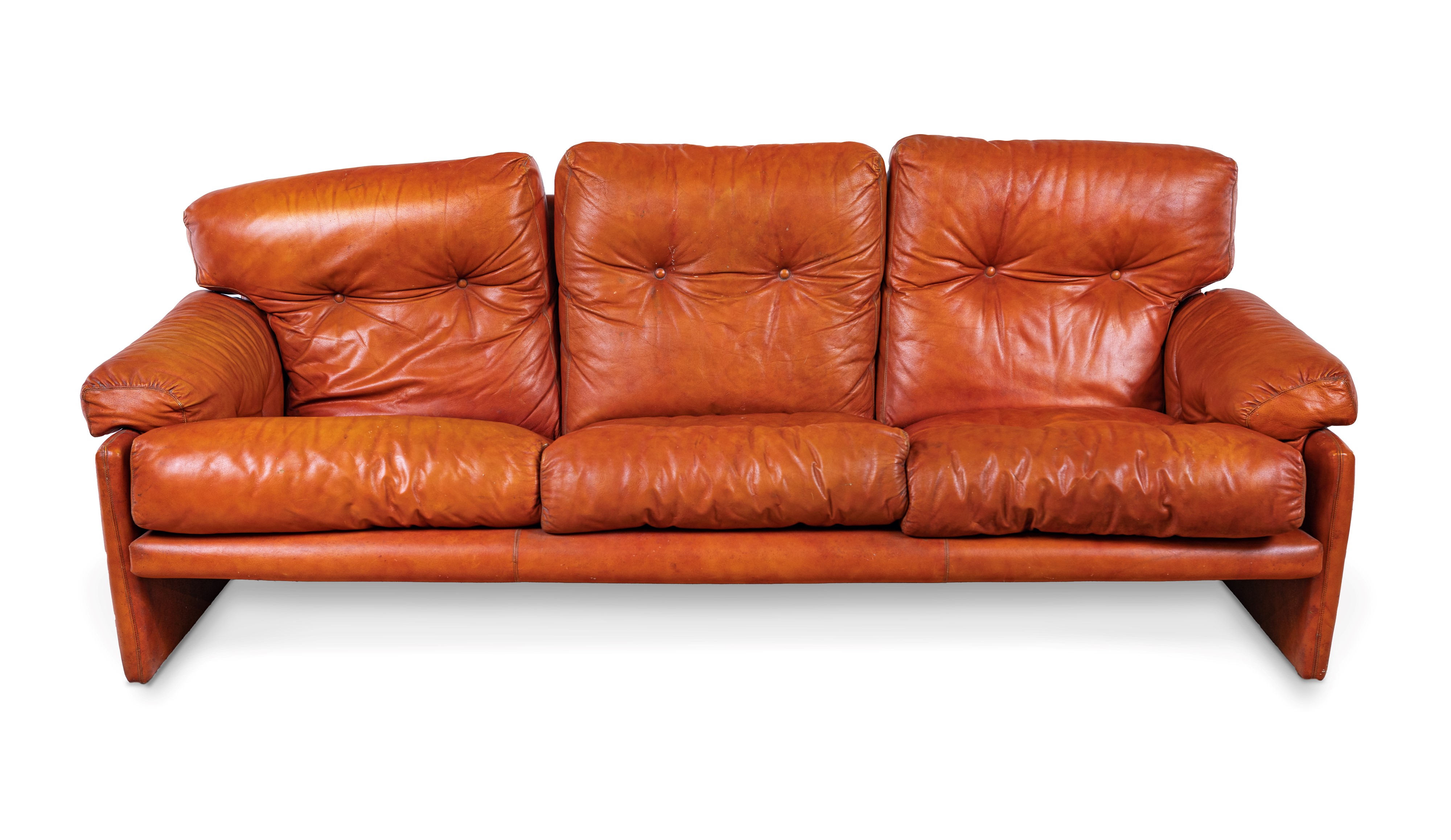 Lotto composto da un divano a tre posti e due poltrone. Prod. B&B, Italia, 1960 circa. Il divano misura cm 70x210x80 circa e le due poltrone misurano ognuna cm 70x100x95 circa.