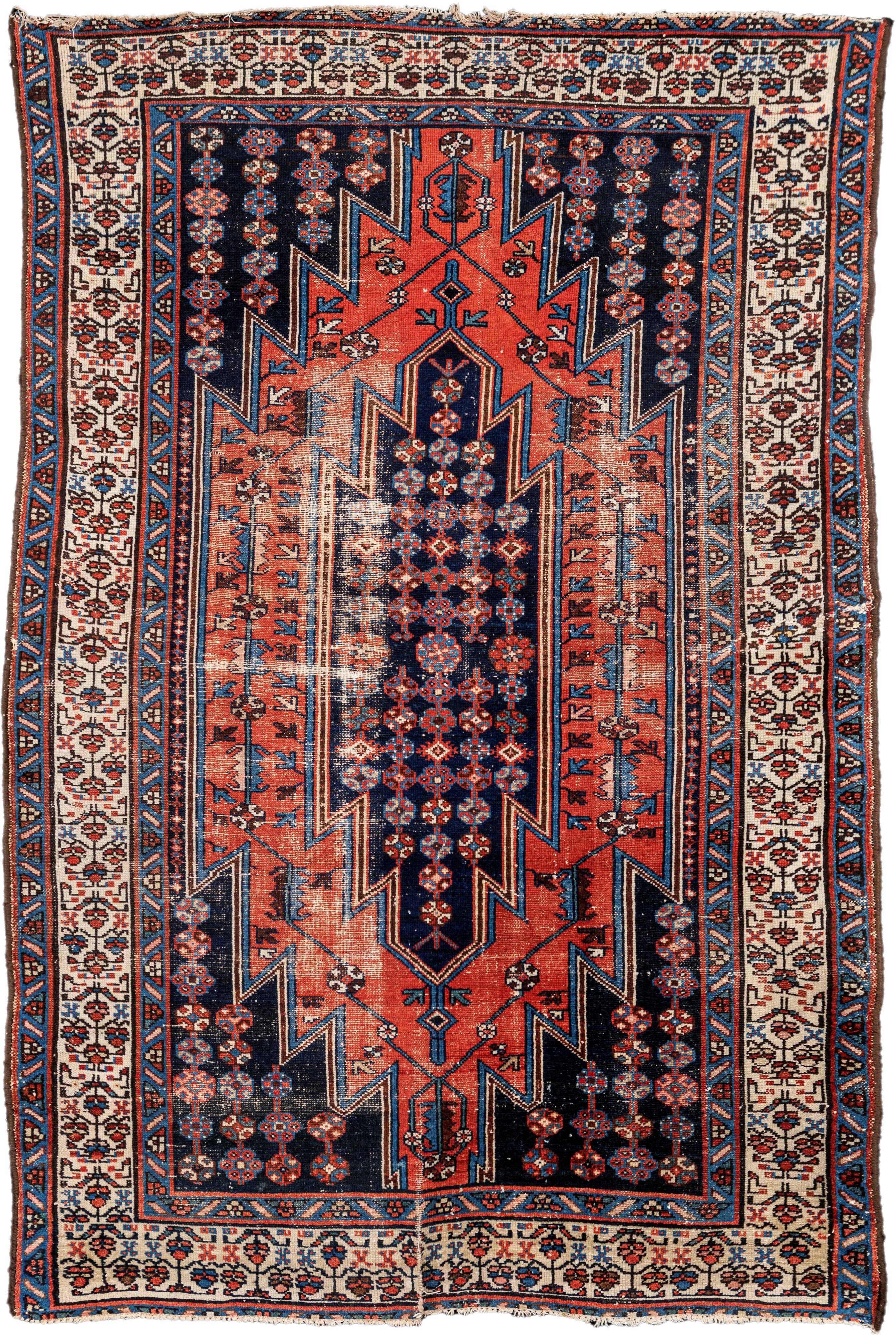 Tappeto iraniano Mazlagan blu, rosso e bianco