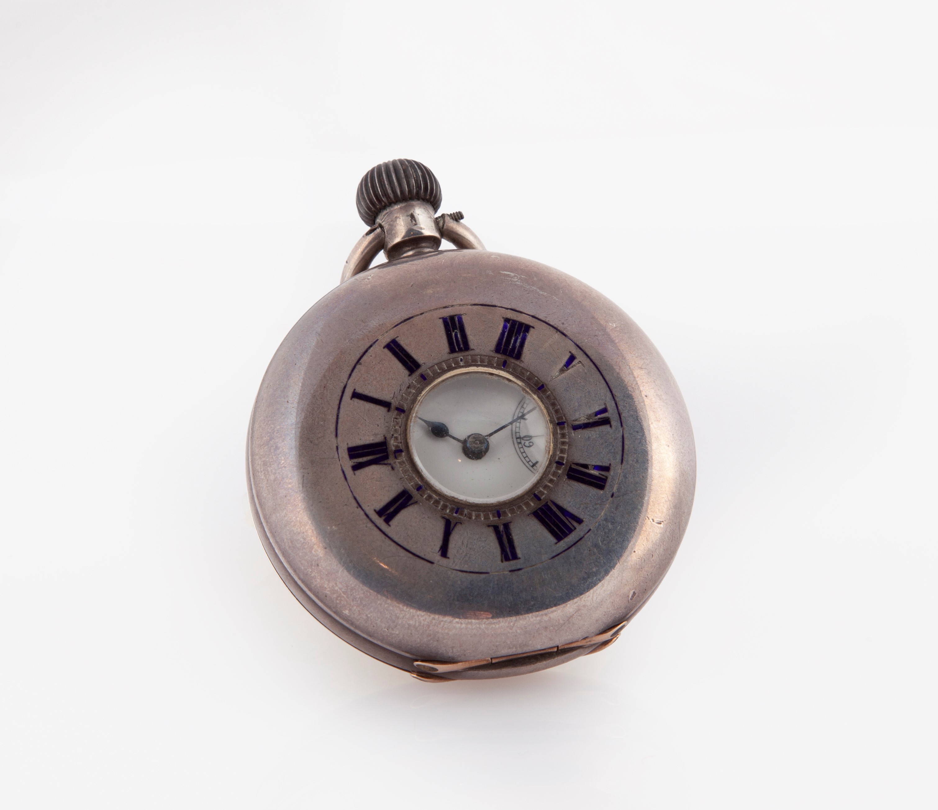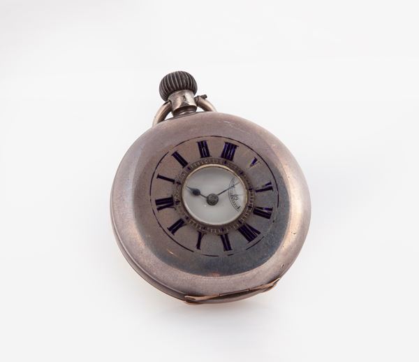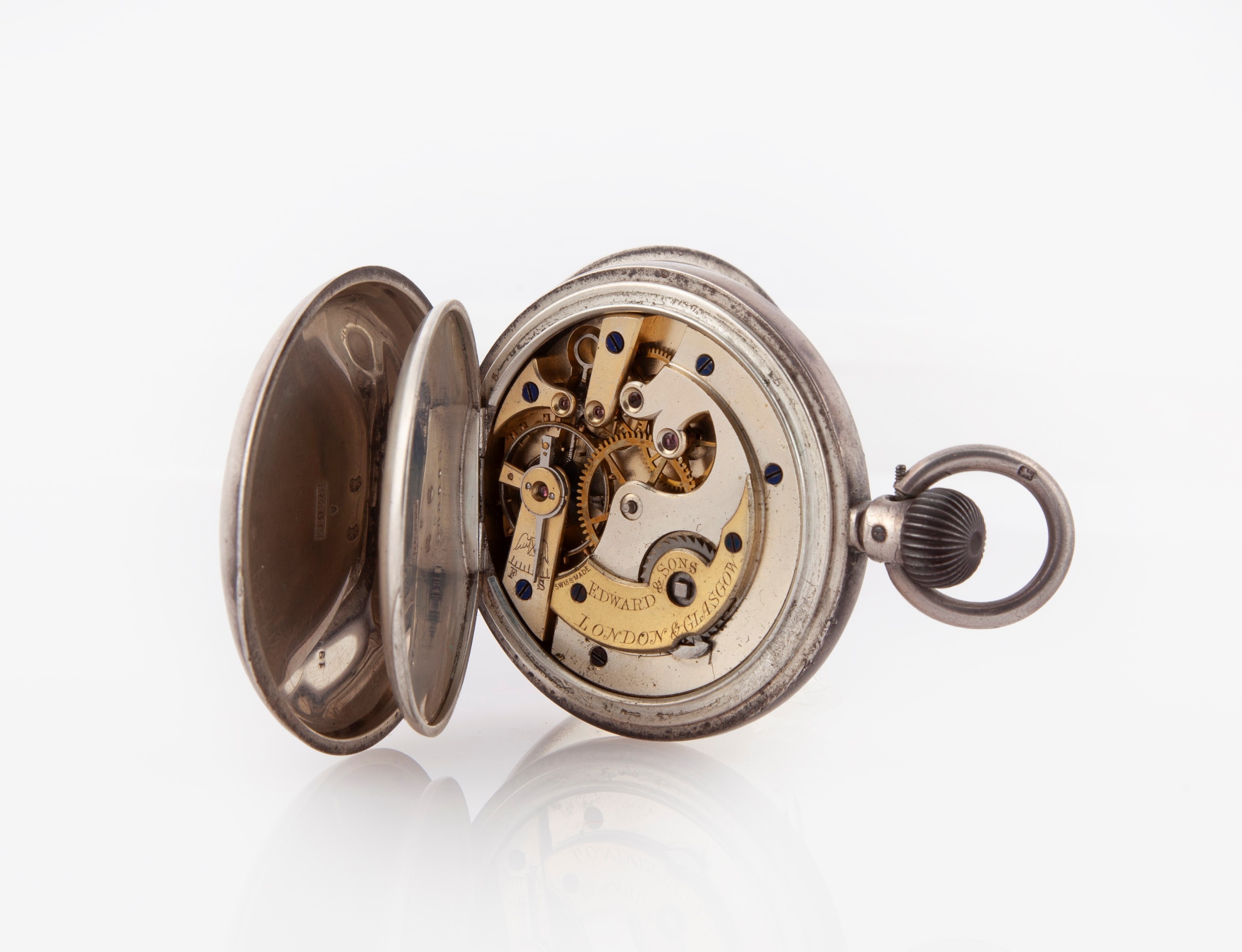 Edward & Sons - Orologio da tasca in argento 935/000 a occhio di bue, meccanica remontoir, quadrante in smalto con numeri romani. Lancette a pera, 1880 ca