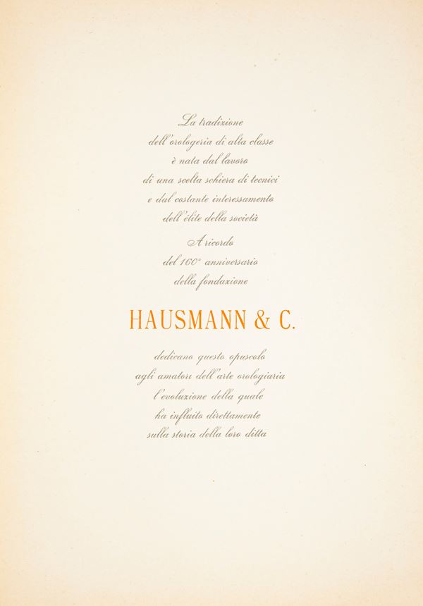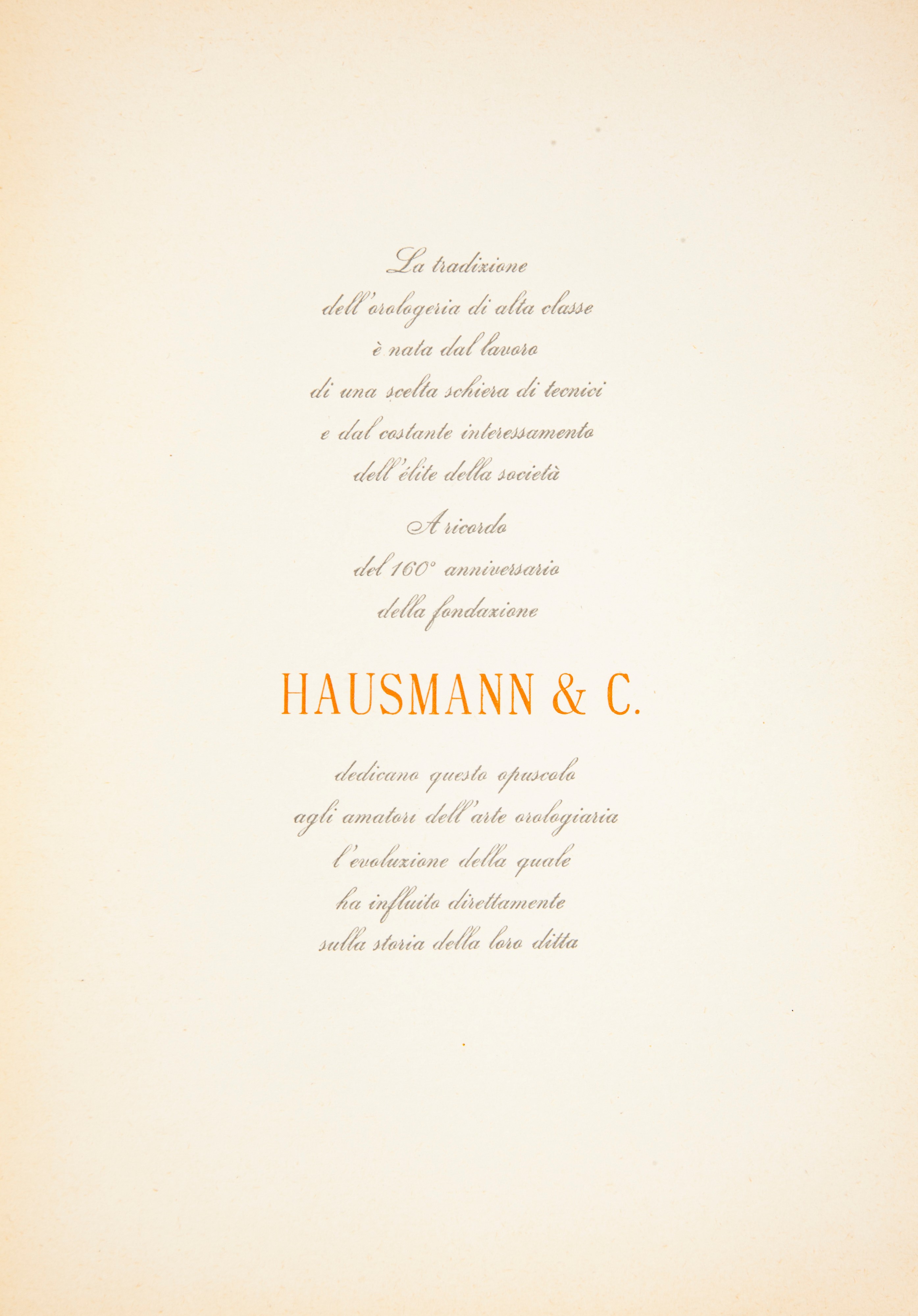 Hausmann & C. - Orologiai da 160 anni. Opuscolo celebrativo dei 160 anni dell'Anniversario della fondazione, 1954