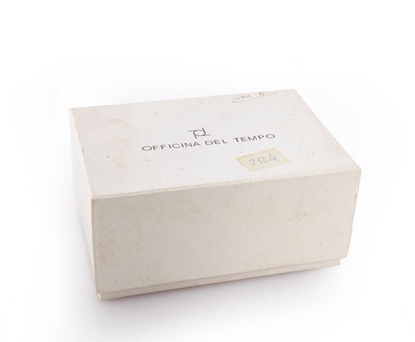 N. 1059. Nuovo con le plastiche protettive sul quadrante e sul fondello. Funzionante. Water resistant 50 metri. Fibbia e cinturino originali. Entro scatola di legno con contro scatola di cartone originali e cuscino.