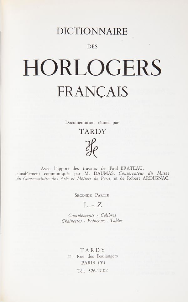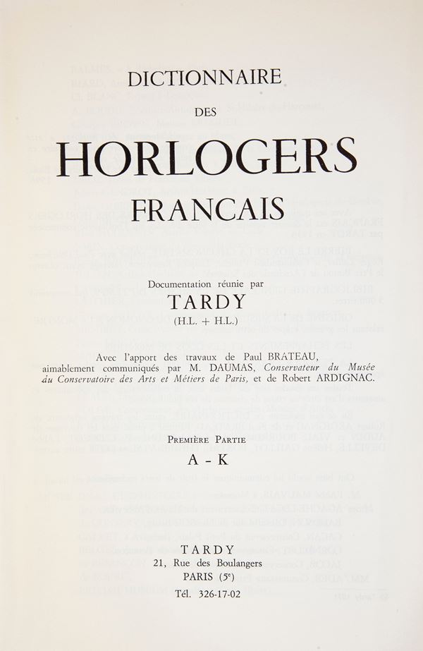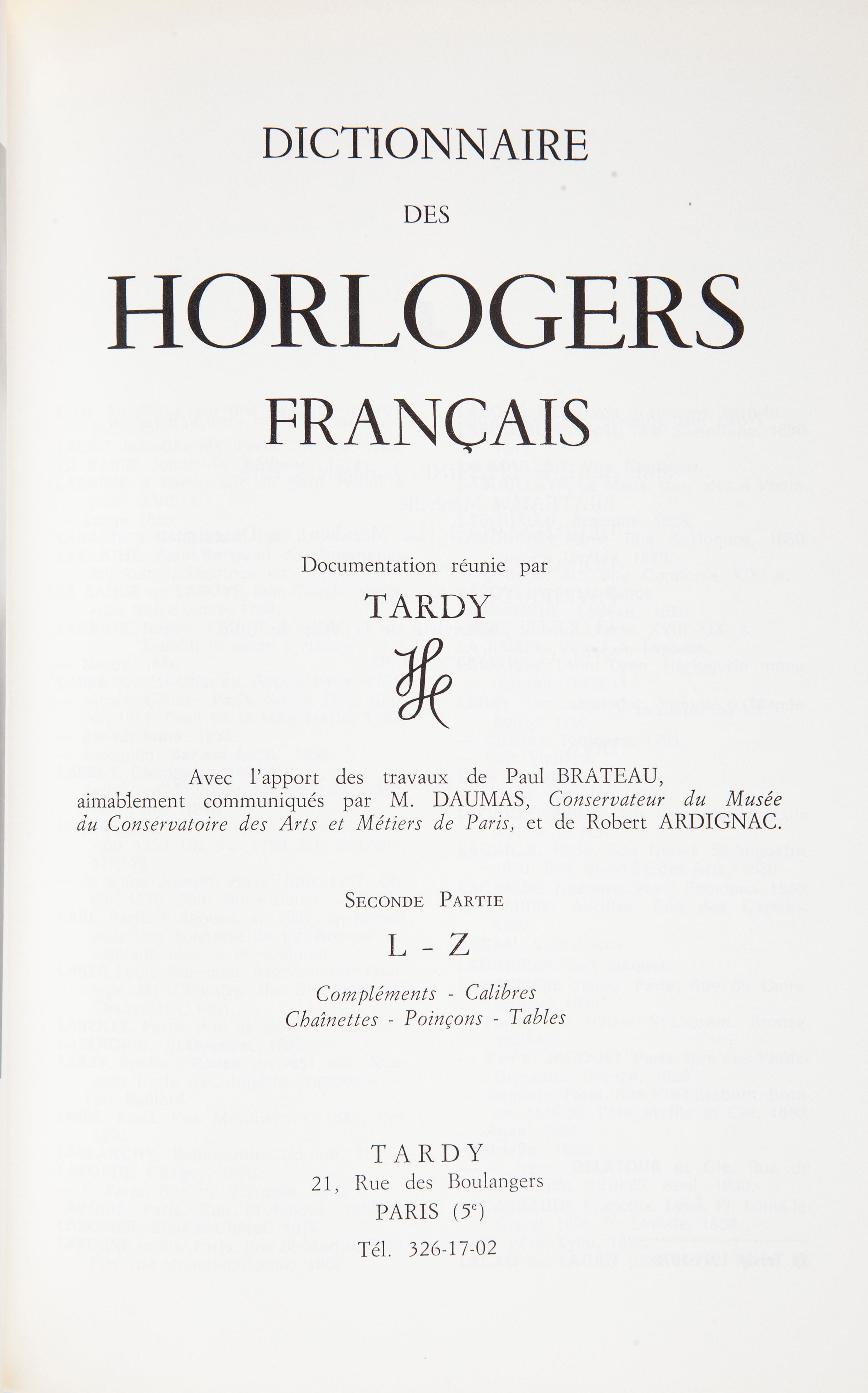 Paul Brateau - Tardy. Dictionnaire des Horlogers francais, Tardy, Parigi 1971