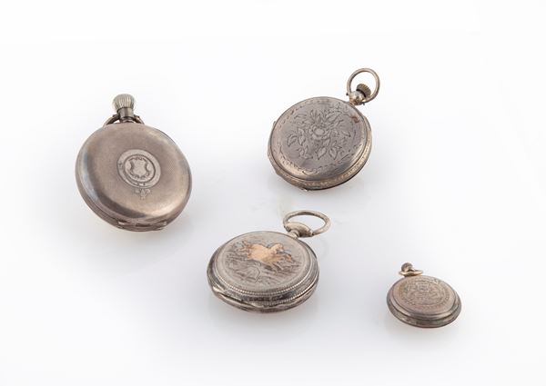 - Orologio a monachina da donna in metallo argentato. Carica remontoir. Casse con incisioni floreali. Mancante di lancette. Da revisionare. 1920 circa.