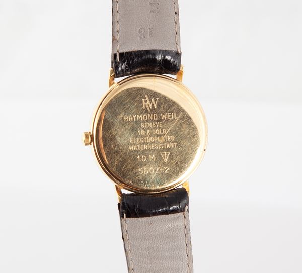 Raymond Weil - Orologio da polso al quarzo da uomo in metallo placcato in oro giallo 18 Kt. Con misura pulsazioni e datario. Quadrante in smalto.