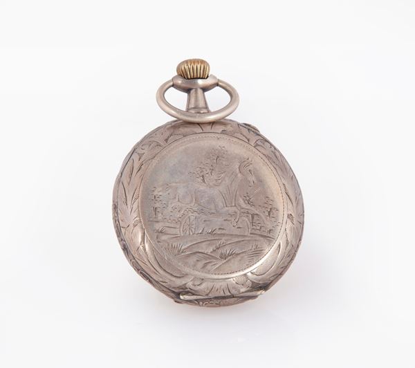 Da revisionare. Cassa incisa con raffigurazione di un cavallo in corsa. Cassa parapolvere in argento.