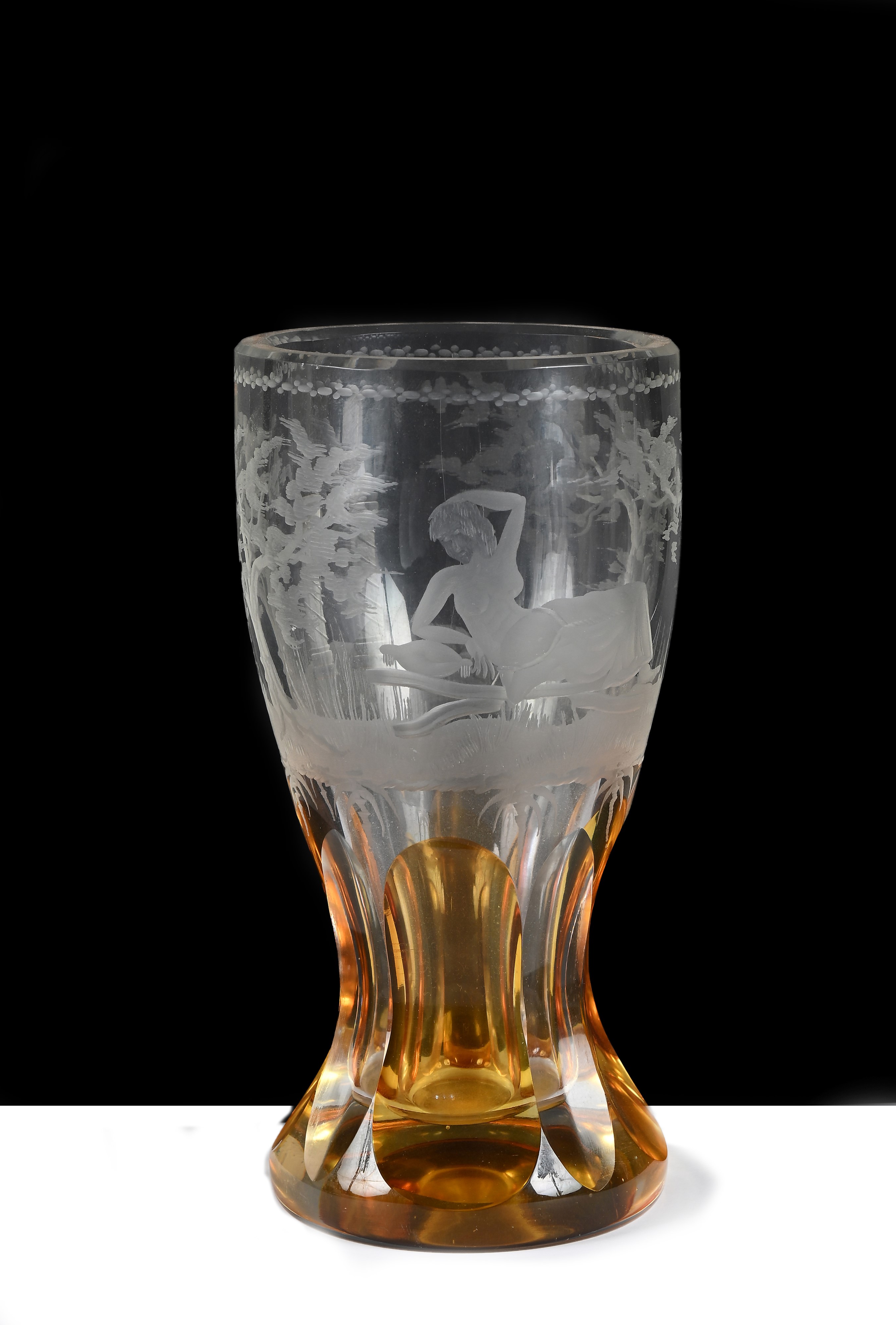 Bicchiere Biedermeier in vetro con naiade incisa, Boemia, XIX secolo