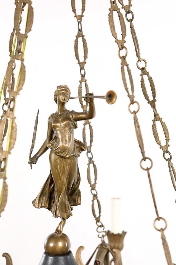 Lampadario di gusto Impero in metallo e bronzo, XIX secolo