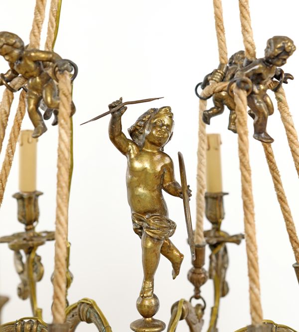 caratterizzato da figure di amorino sparse lungo la struttura sorretta da cordoni in tessuto