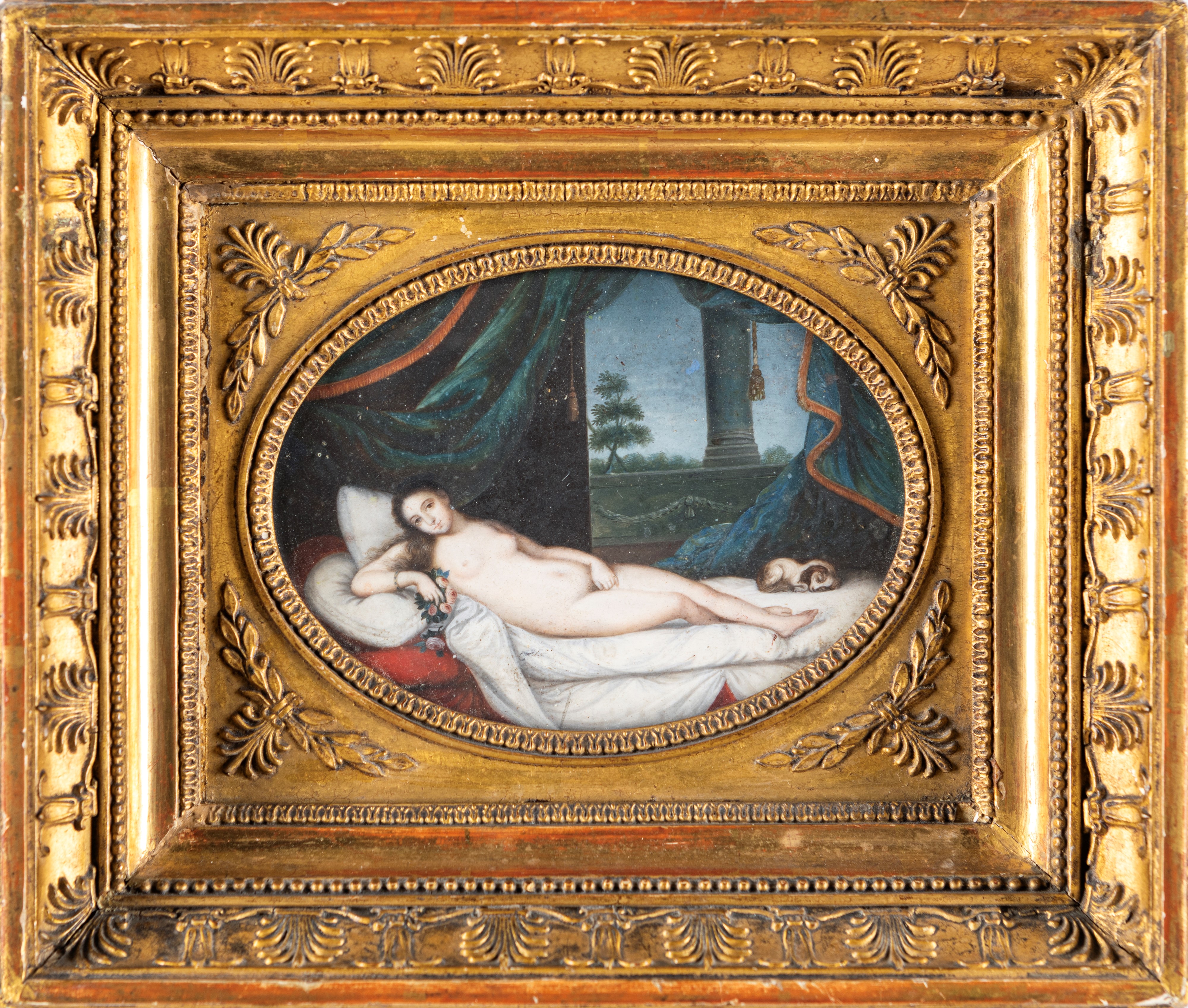 Cornici in legno dorato con minuziosa decorazione a palmette in pastiglia