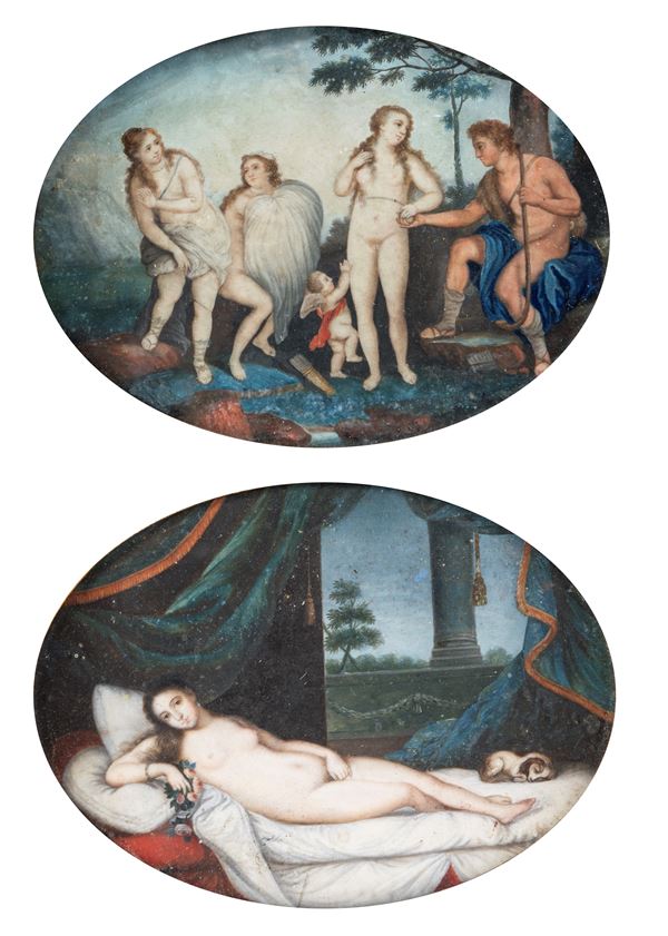 coppia di miniature ovali eseguite a tempera