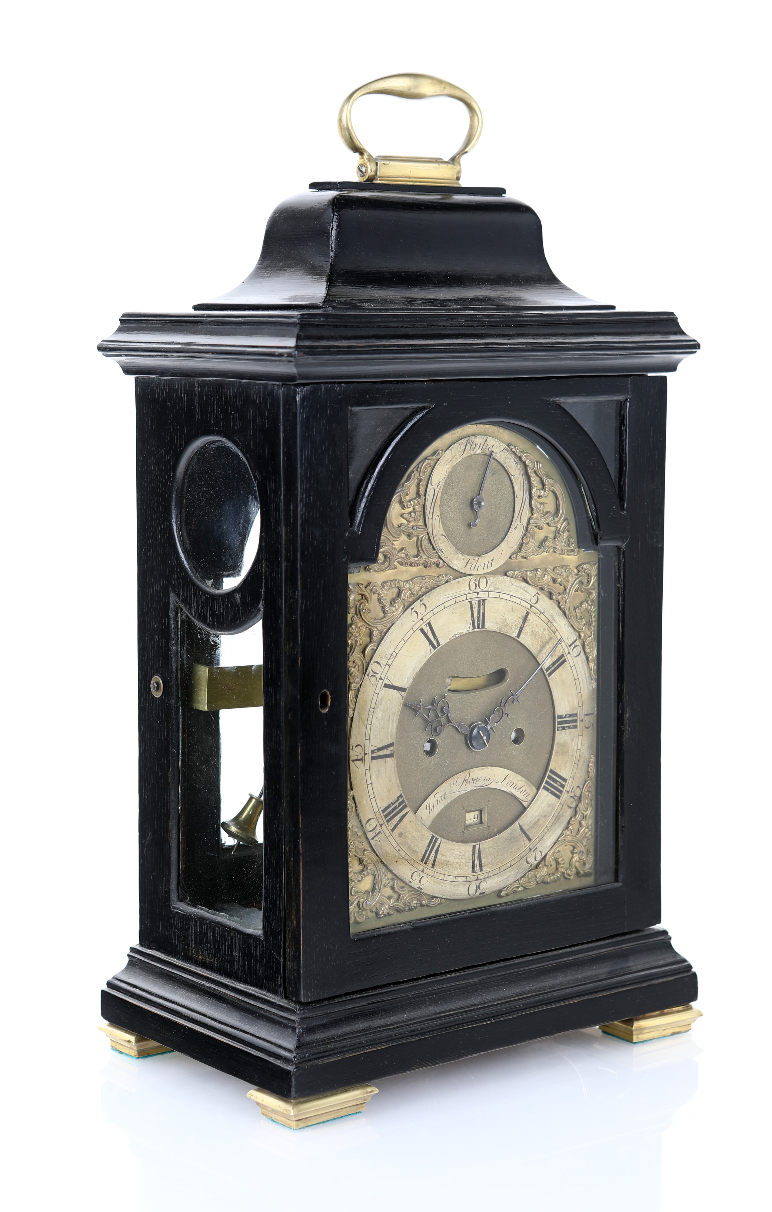 Pendola da tavolo Bracket in legno ebanizzato firmato Isaac Rogers, Londra, 1760