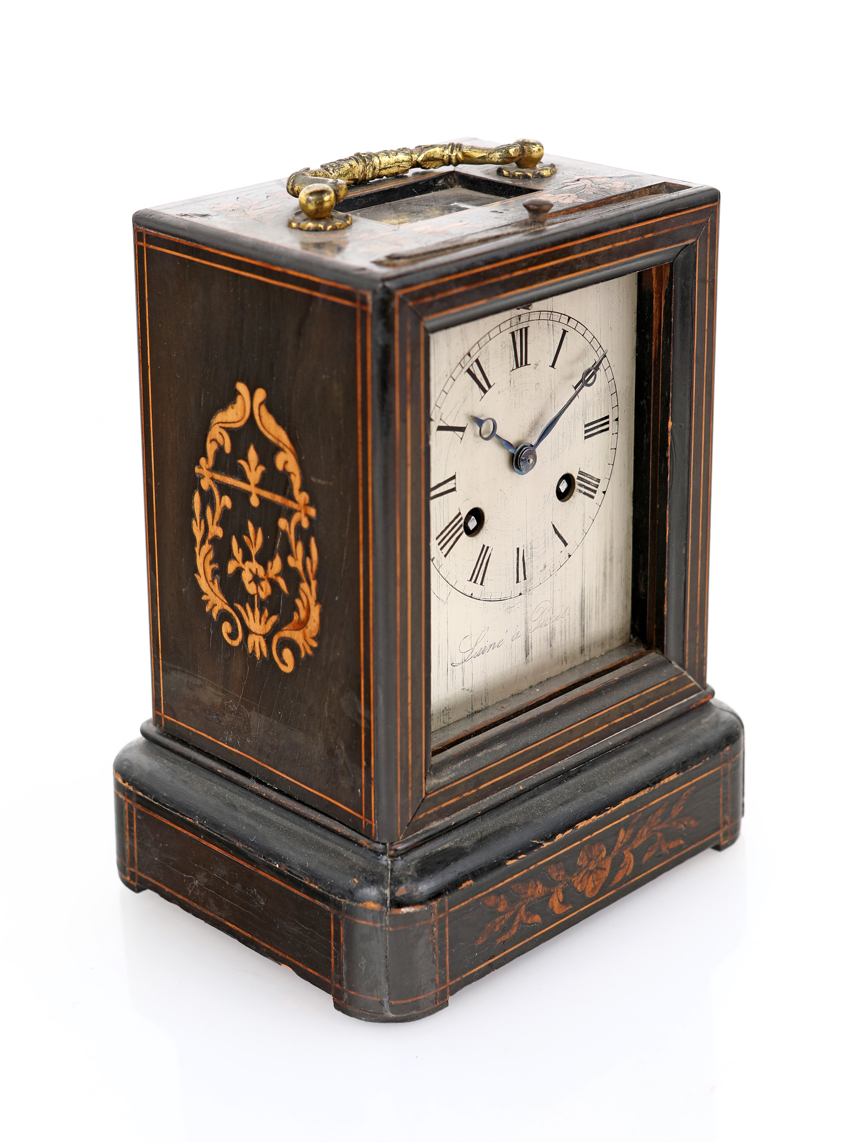 Pendola da viaggio in legno intarsiato, Lainé à Paris, 1830