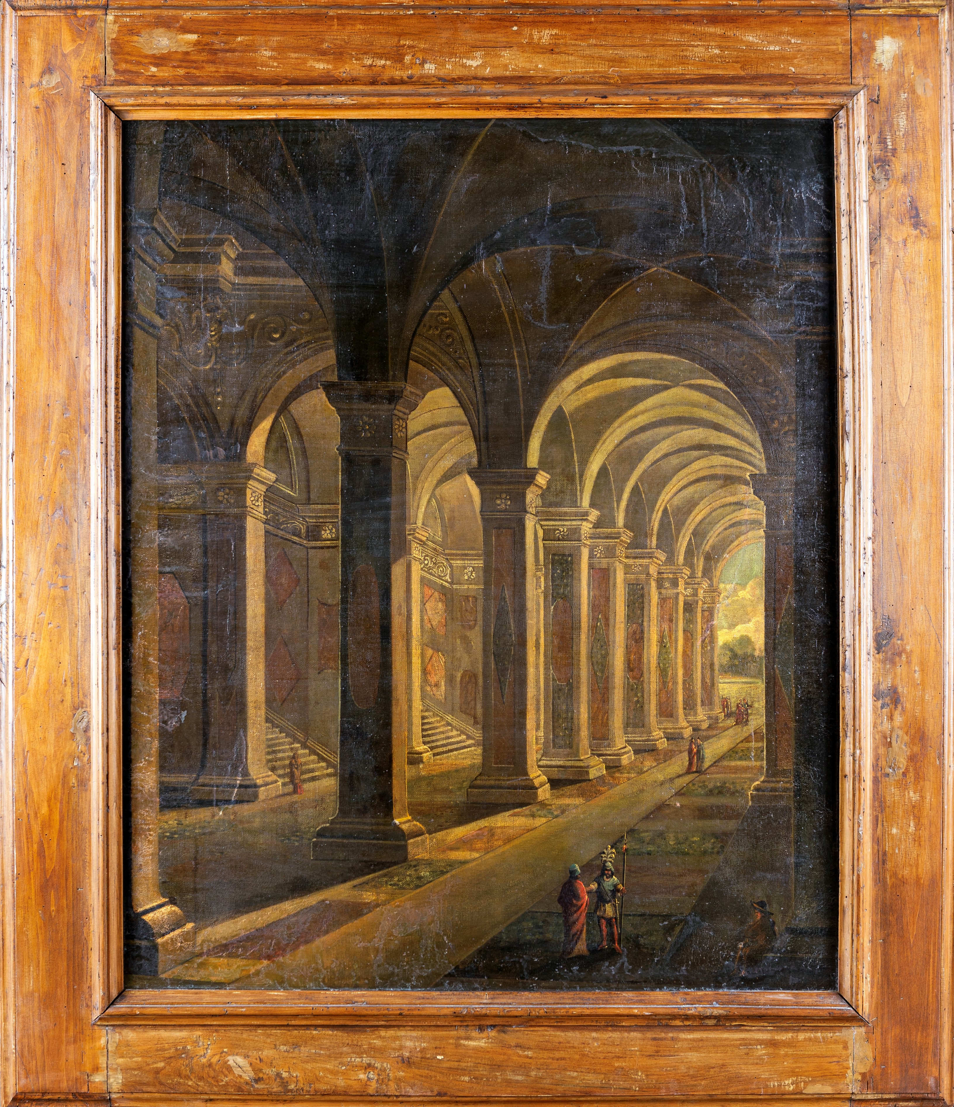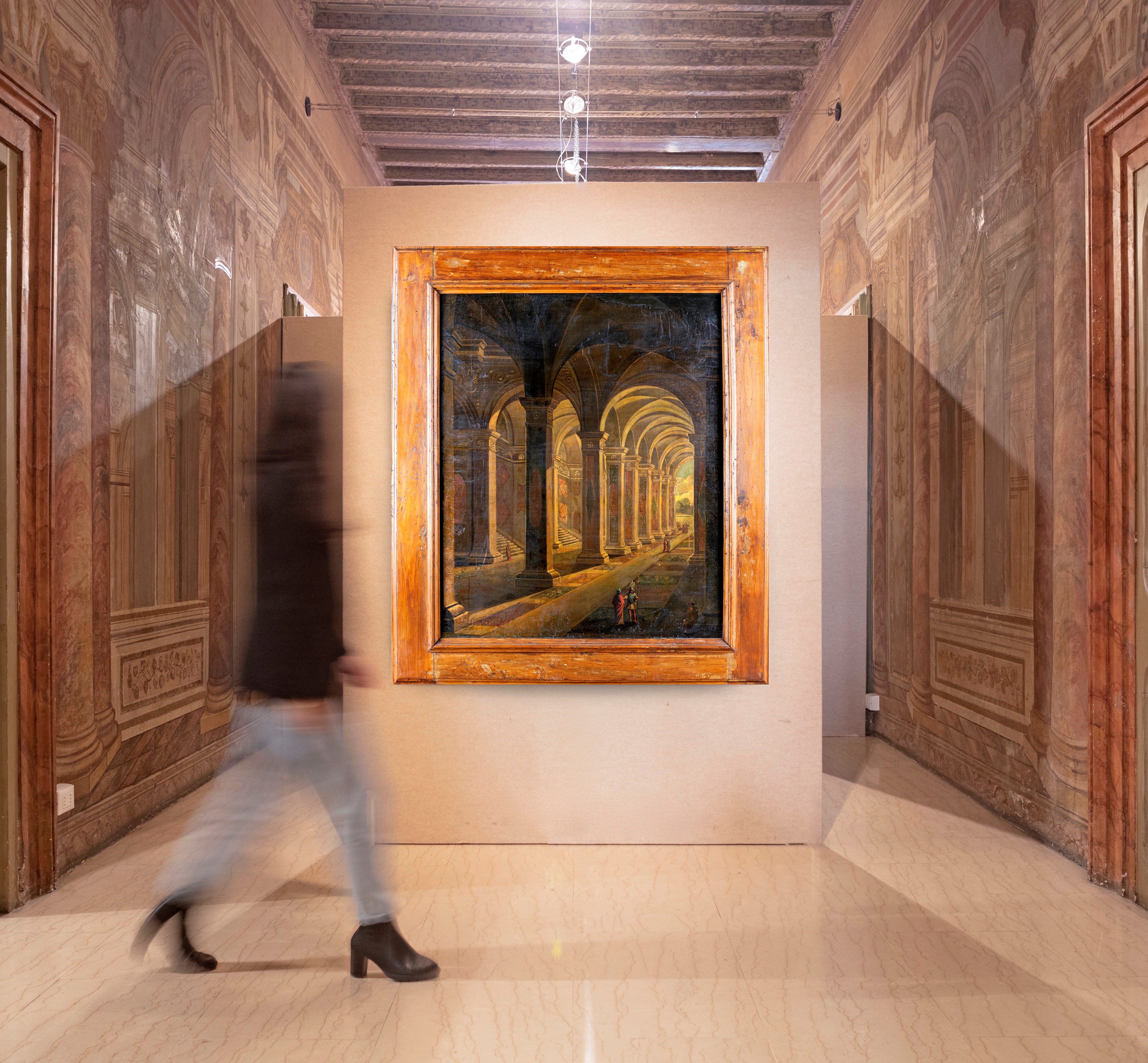 Questa coppia di eleganti vedute immaginari di due logge di eleganti palazzi è animata da personaggi, dipinti con estrema perizia, vestiti in armi. La volte e le pareti sono adornate da pregiati marmi policromi e da volute e ghirlande diafane. I rifermenti stilistici del nostro pittore vanno individuate nelle opere di Agostino Tassi, ma soprattutto in Viviano Codazzi, grande maestro quadraturista, e suo figlio Niccolò.