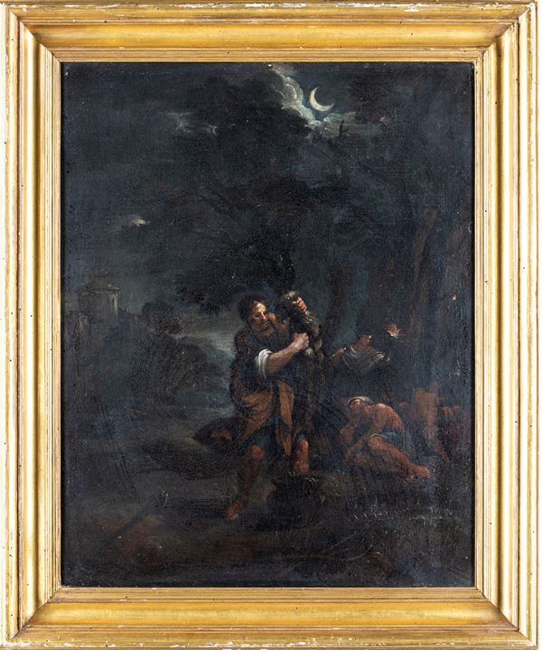 La tela con la storia di San Pietro è da collegare alla produzione di notturni, di qualità eccelsa, prodotta dal cremonese di nascita ma bolognese d'adozione Donato Creti.
