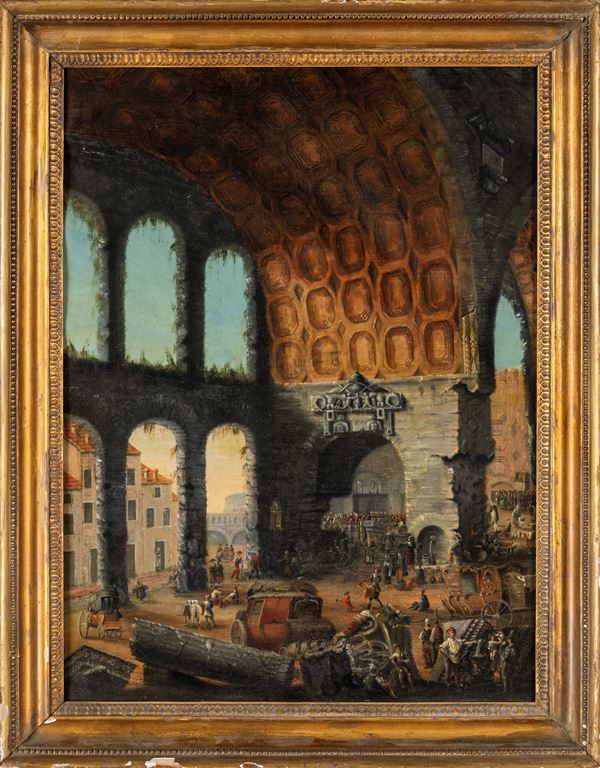 La nostra tela trova un'interessante connessione con un'acquaforte di Giovan Battista Piranesi del 1774. Nella stampa tuttavia, la composizione, di forma orizzontale, mostra una veduta complessiva della Domus Aurea di Nerone.