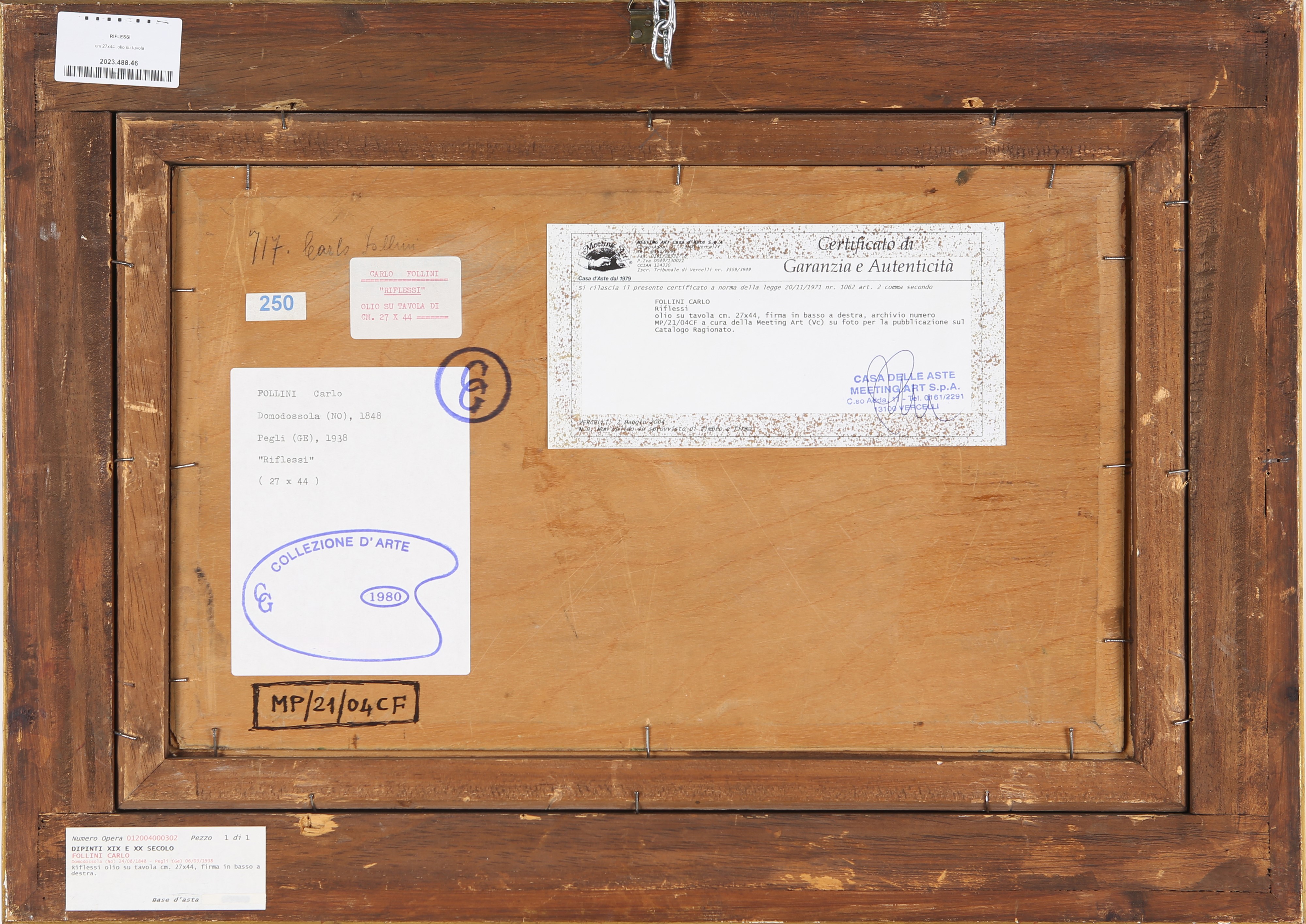 Firmato in basso a destra "Follini"; al verso etichetta con titolo
