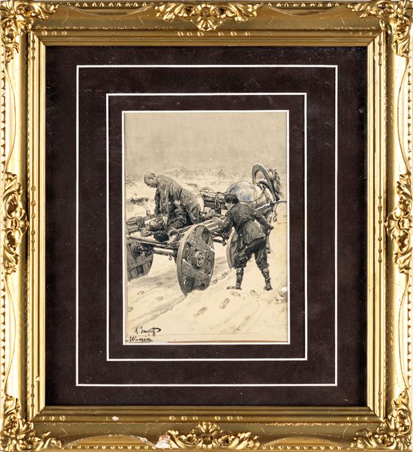 Scena di lotta nella neve - Tavola per illustrazione