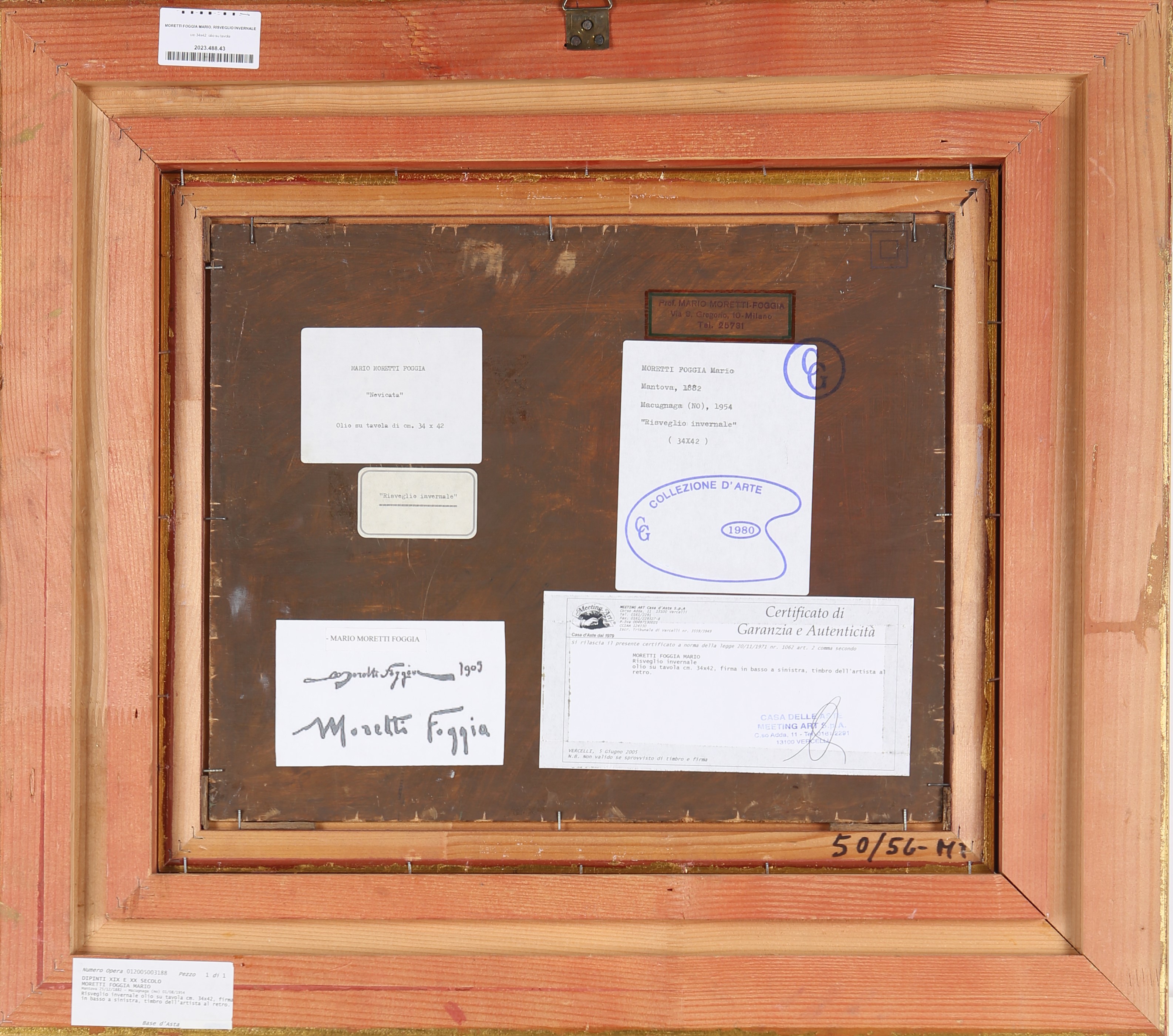 Firmato in basso a sinistra "Moretti Foggia"; al verso timbro dell'artista ed etichetta con titolo