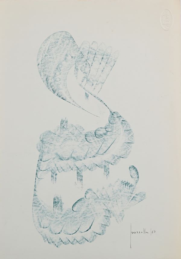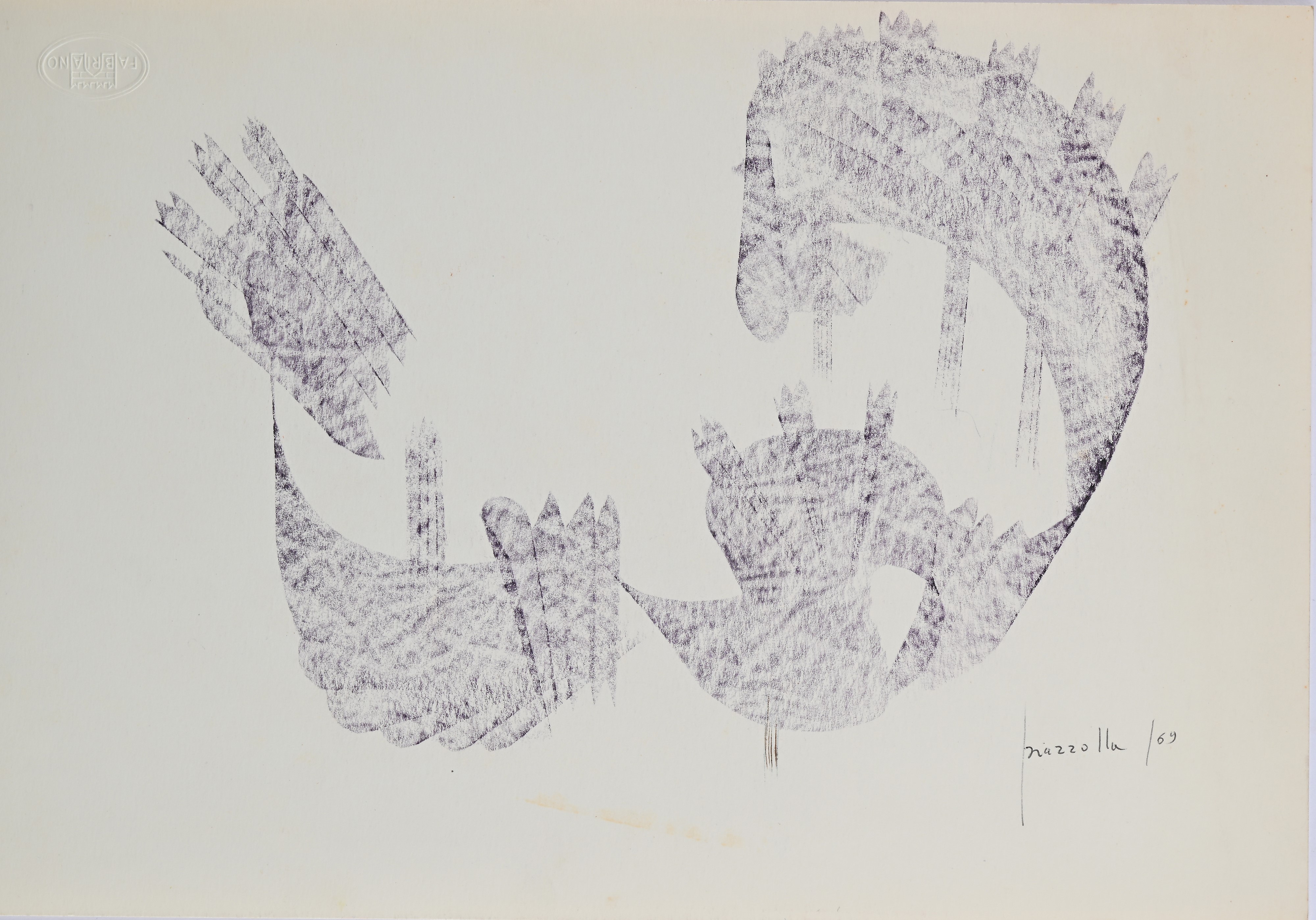 due opere misurano cm 50x35. 4 misurano cm 35x24. una misura cm 31x22. Tutte firmate "Piazzolla". Alcune datate 1969 altre 1970