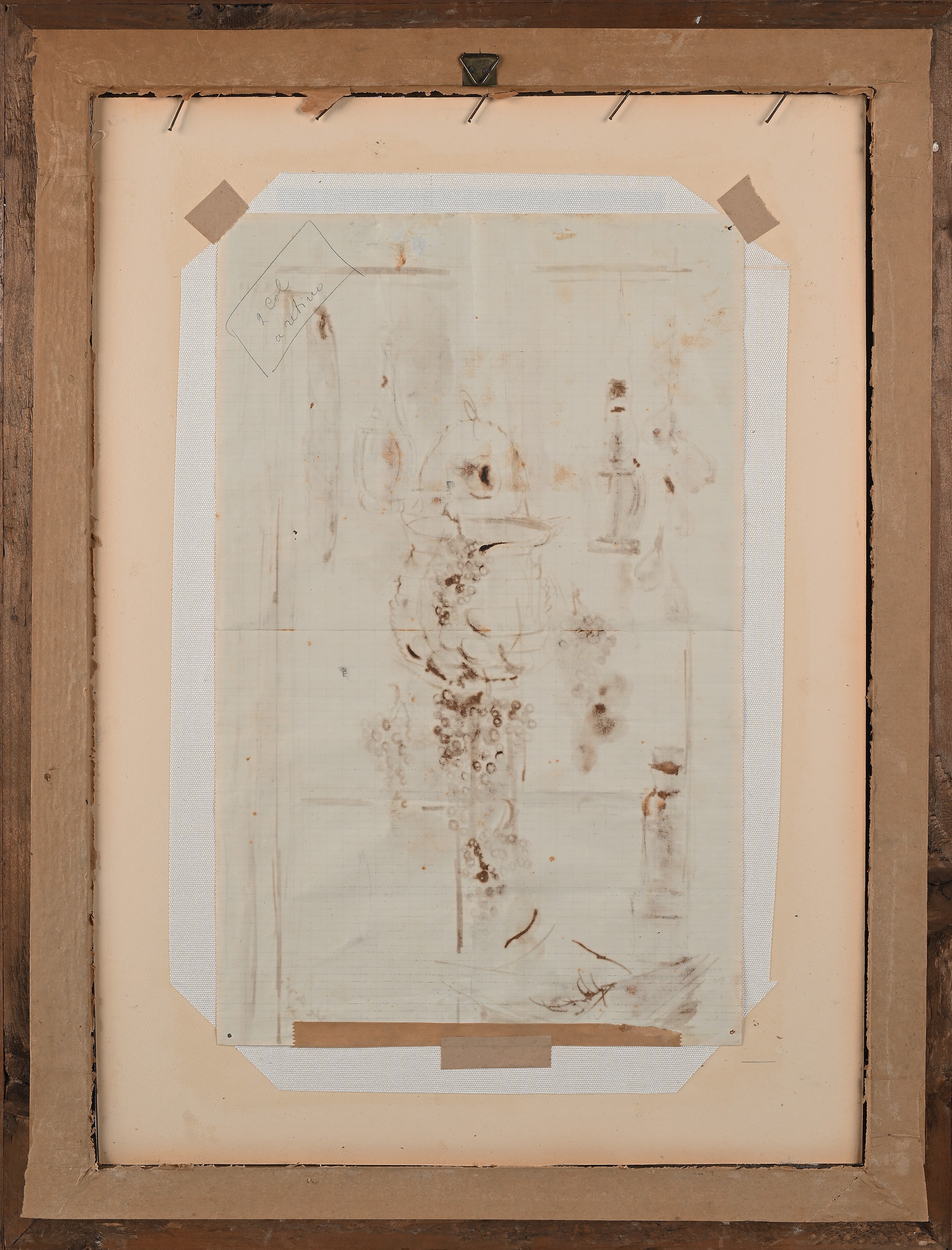 Firma, data e titolo sul fronte "Interno di bottega italiana, De Pisis '31"