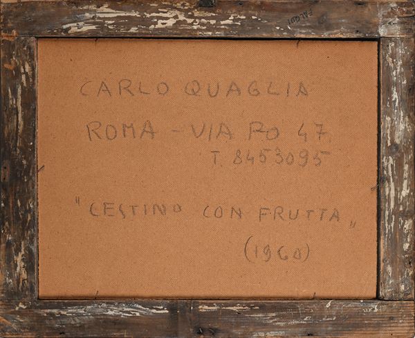 Firma in basso a destra "Quaglia". Al verso reca firma, titolo e data
