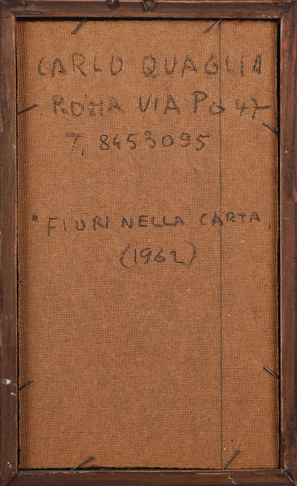 Firma in basso a sinistra "Quaglia". Al verso reca firma, titolo e data