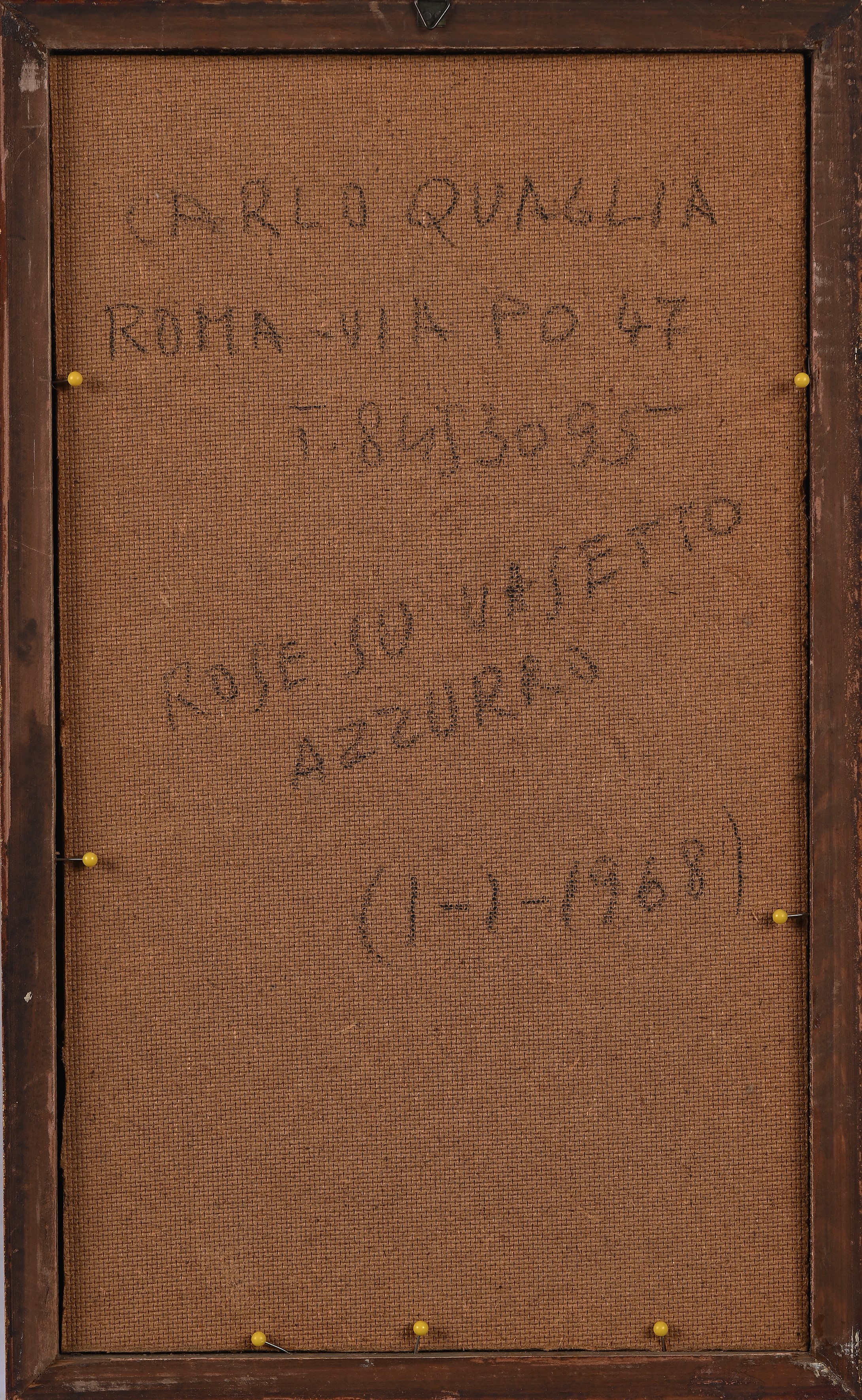 Firma in basso a sinistra "Quaglia". Al verso reca firma, titolo e data.