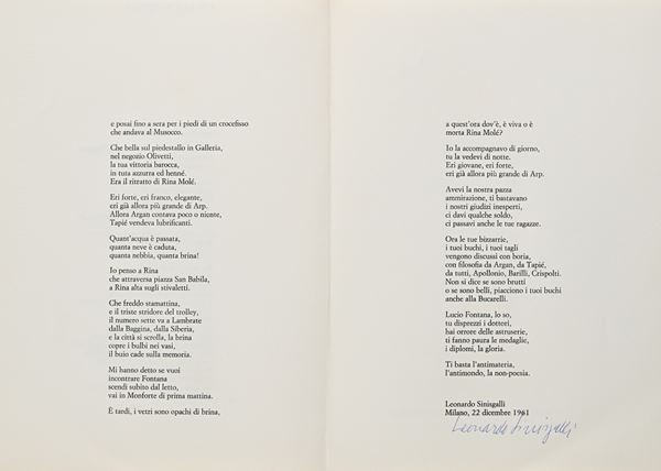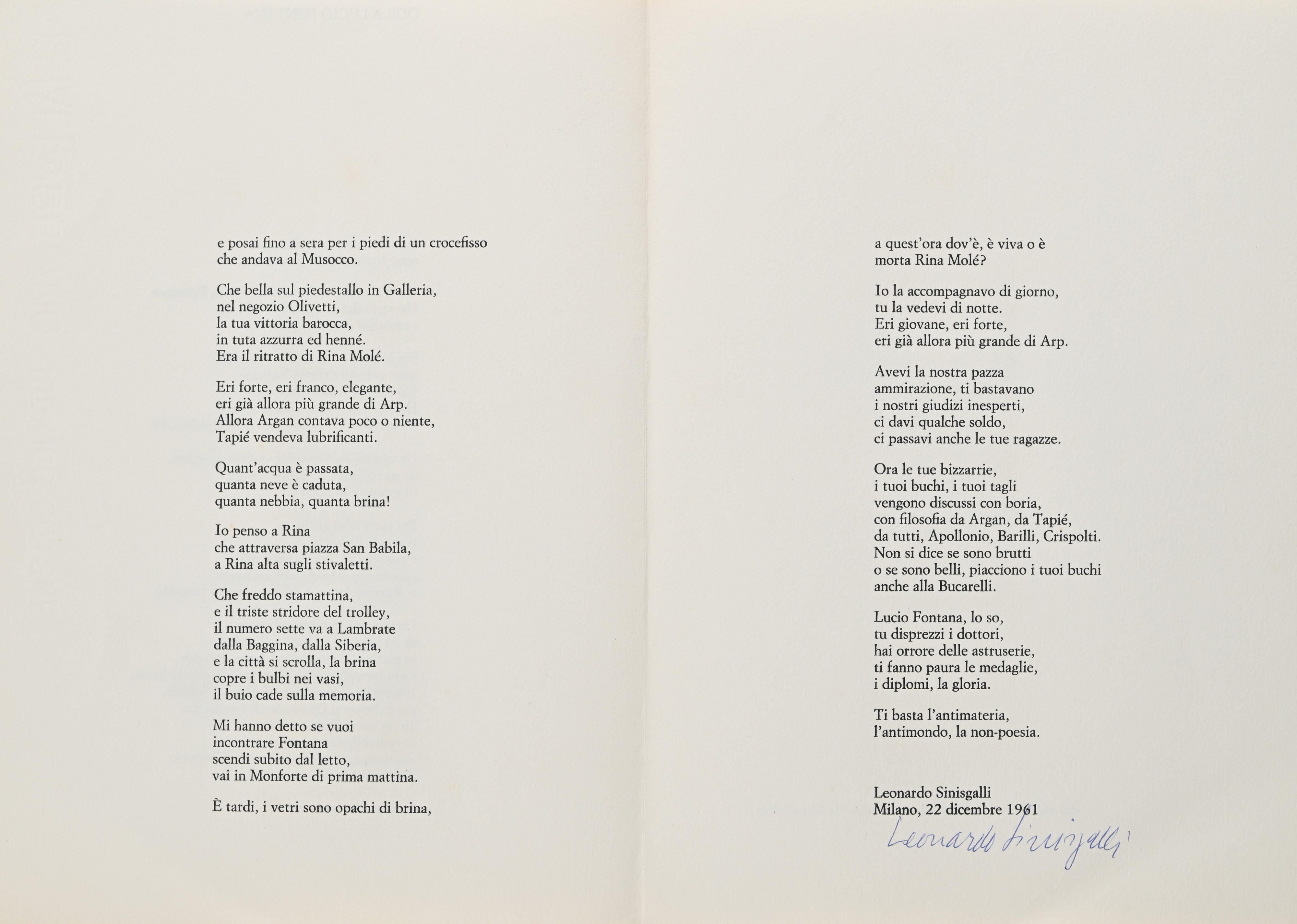 Ode a Lucio Fontana dal volume "L'Età della Luna" edito da Mondadori