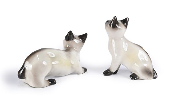 Due cuccioli siamesi in ceramica policroma