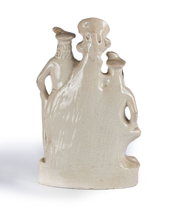 Gruppo con vaso unifleur in terraglia di epoca vittoriana, Staffordshire, Inghilterra, seconda metà del XIX secolo