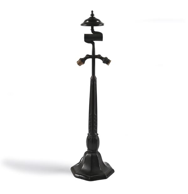 Lampada da tavolo in bronzo e vetro giallo piombato, attribuibile alla Duffner & Kimberly Co. New York, primi anni del Novecento