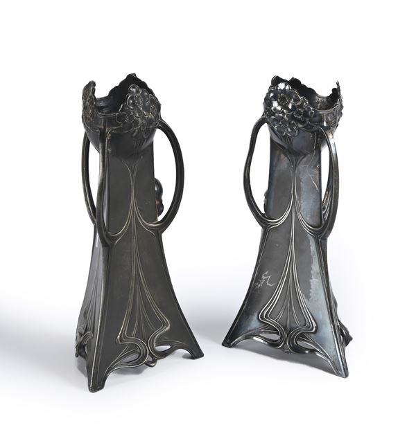 Portafiori Art Nouveau in peltro, Varsavia, Roman Plewkiewicz (attivo dal 1886 al 1935)