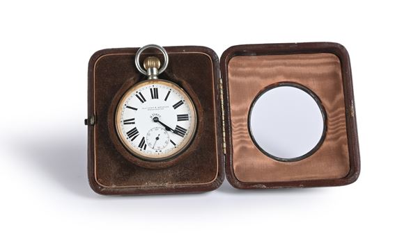 carica otto giorni, custodia in pelle, bachelite tartarugata e filettatura in argento