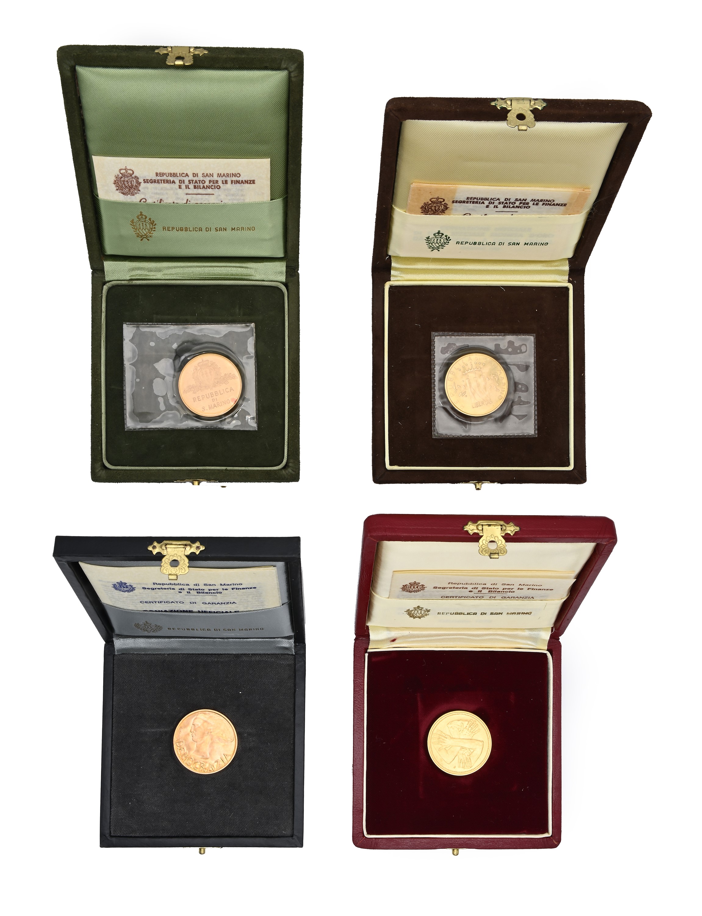 4 monete da 5 Scudi Repubblica di San Marino 1977, 1979, 1981, 1982
