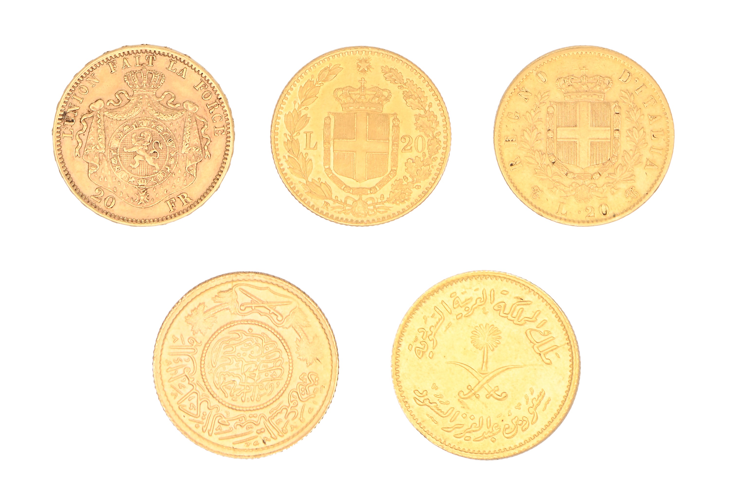 Lotto: 2 monete 20 lire Regno d'Italia; 20 franchi belgi; 2 monete ottomane