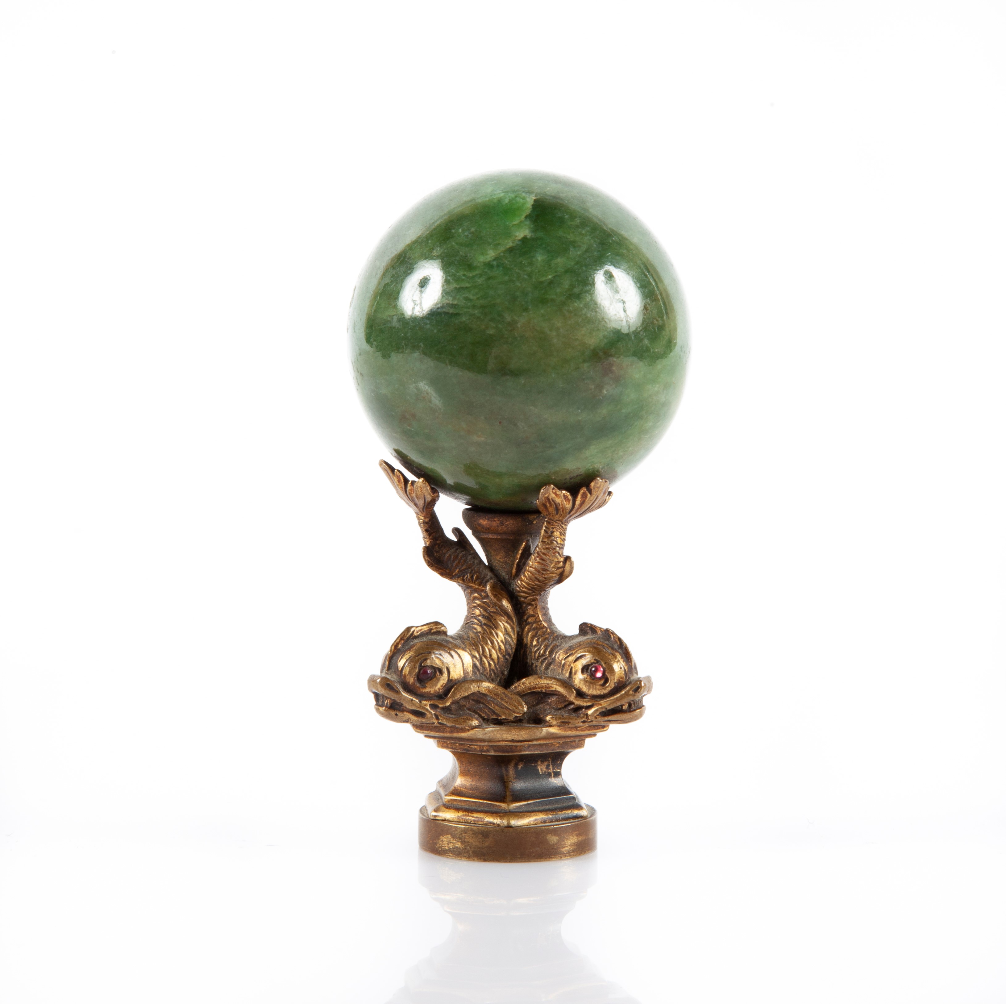 Sigillo in bronzo con 3 delfini che sorreggono una sfera di marmo, Fine XIX Inizi XX secolo