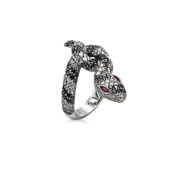 Oro bianco 750/000. Diamanti in taglio rotondo brillante ct. 2,30 ca. Peso complessivo gr. 10,30.