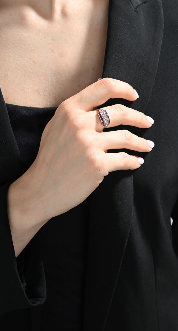Anello in oro diamanti e rubini