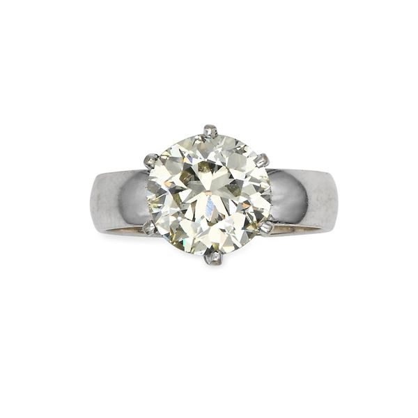 Oro bianco 750/000. diamante in taglio rotondo brillante ct. 3,36. prob L-M VS2. Peso complessivo gr. 6,40.