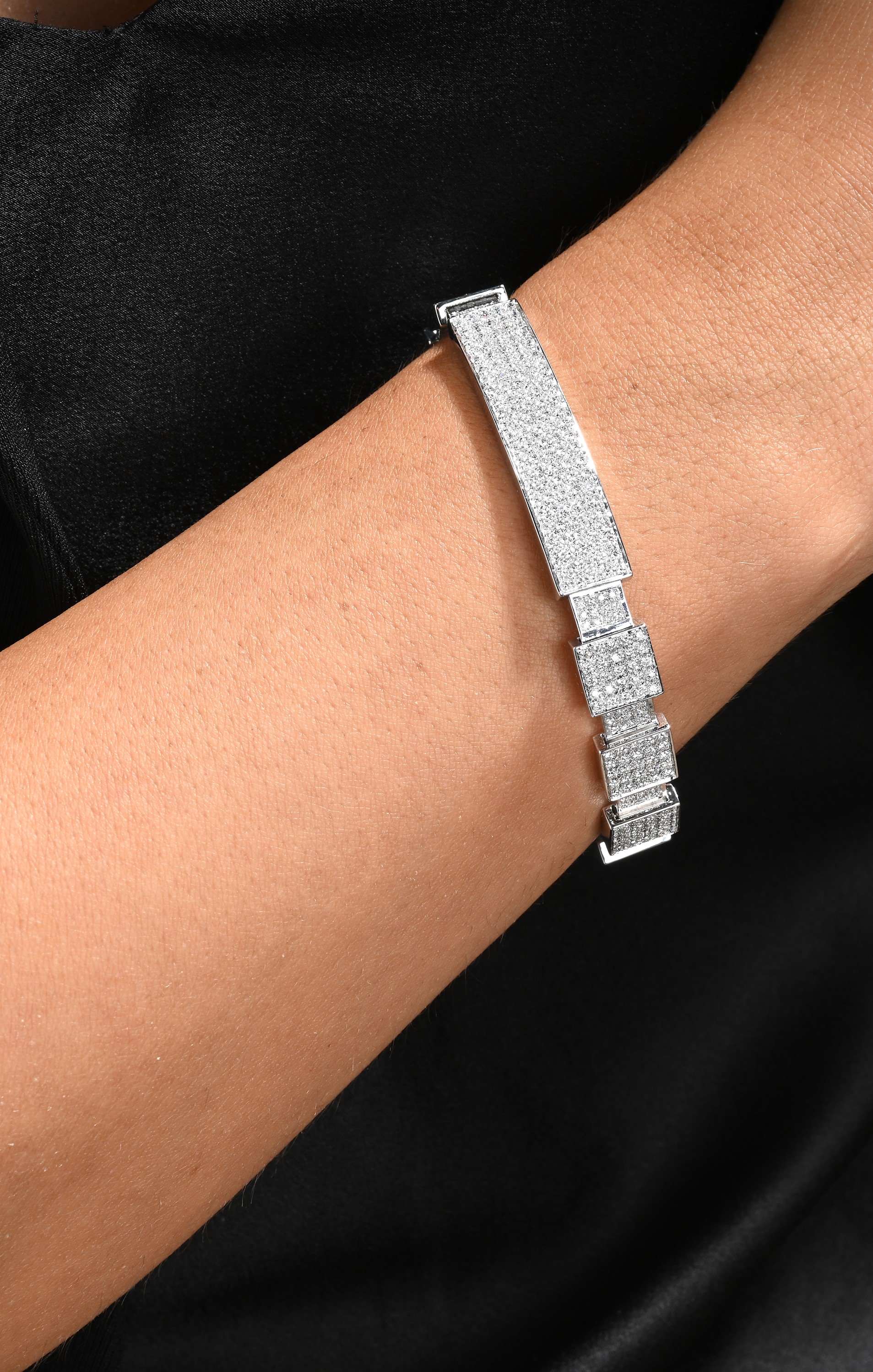 Oro bianco 750/000. Diamanti in taglio rotondo brillante ct. 5,70, F, VS. Peso complessivo gr. 37,80. Corredato di certificazione gemmologica.