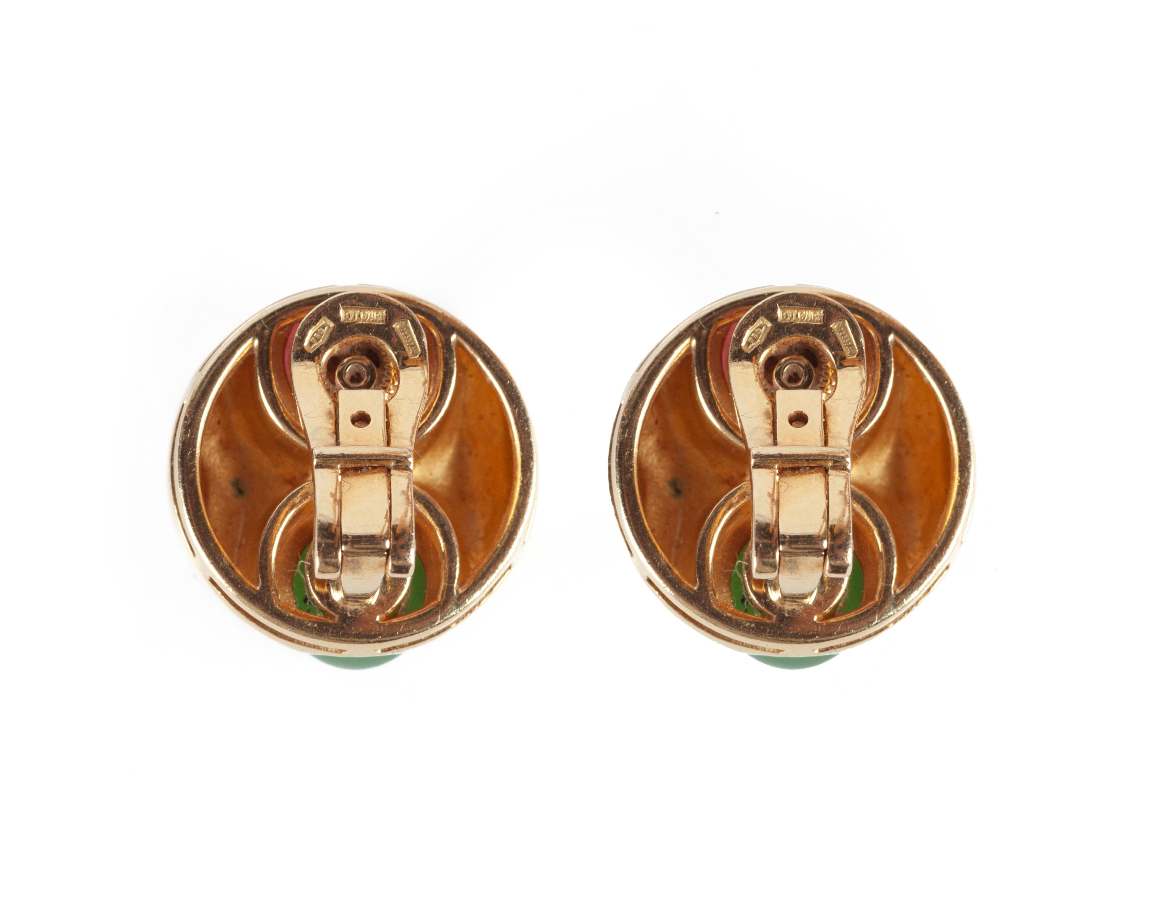 Bulgari orecchini in oro, crisoprasio e rodocrasite, Anni '80
