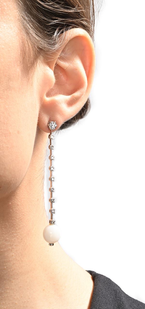 Coppia di orecchini pendenti in oro, perle Clam e brillanti