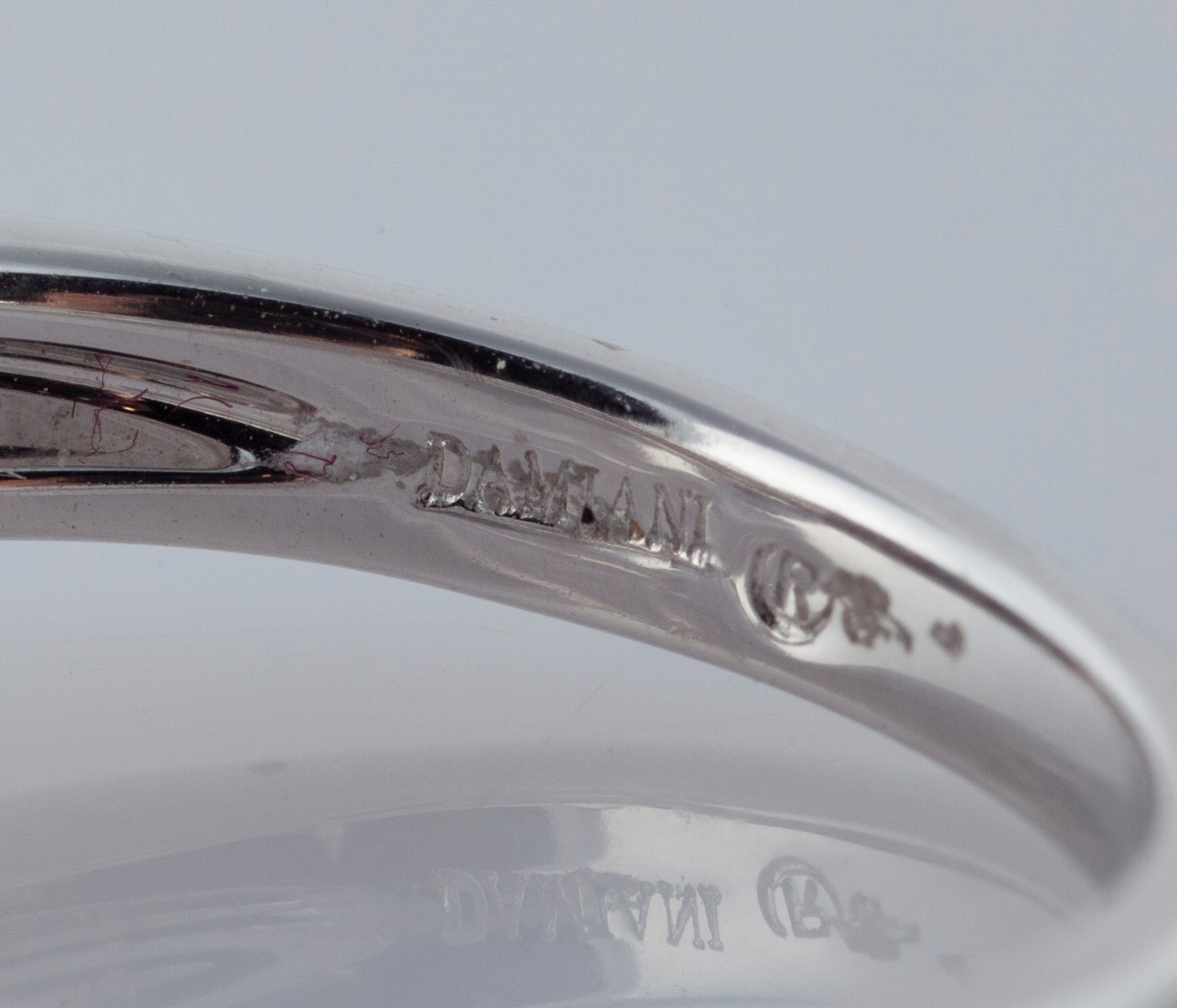Oro bianco 750/000. Diamante in taglio rotondo brillante ct. 0,15 ca. , F-G, VVS. Peso complessivo gr. 4,20