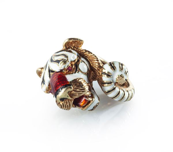 Frascarolo, anello in oro e smalti.