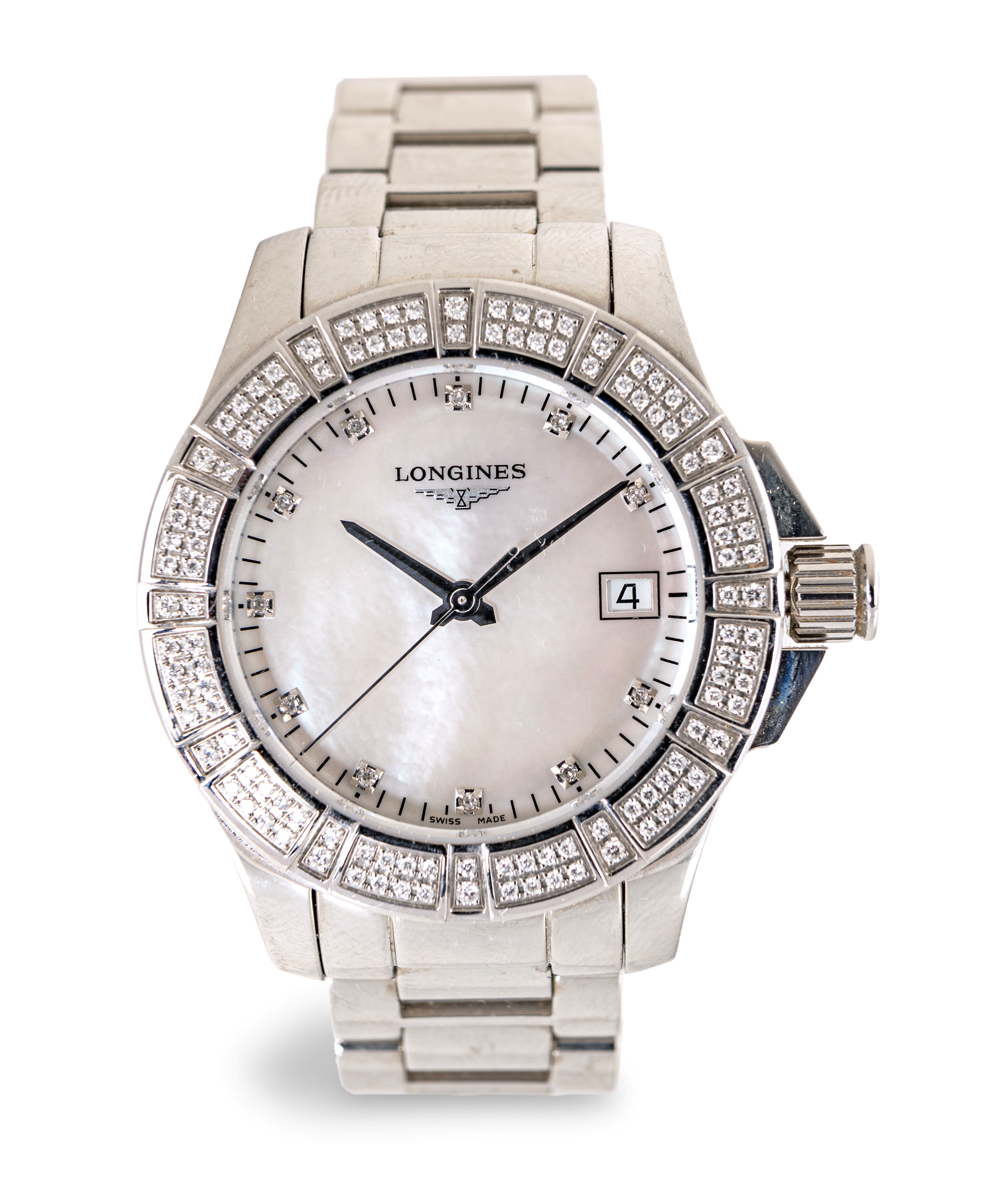 Longines Conquest, orologio da polso in acciaio e diamanti, anni 2016