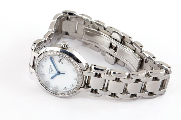 Longines Prima Luna, orologio da polso da donna in acciaio e diamanti, Anni 2000
